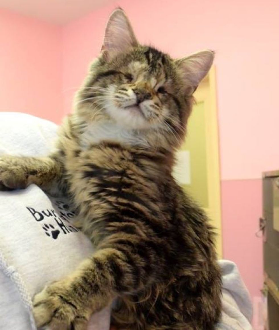 Hope, the cat with no eyes, has found a happy home after being rescued from the Ikea parking lot.