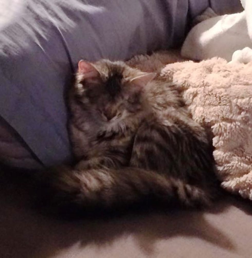 The 16 week old kitten was found abandoned in the Ikea parking lot in December by the Burlington Humane Society along with her mother and sister Charity and Joy.