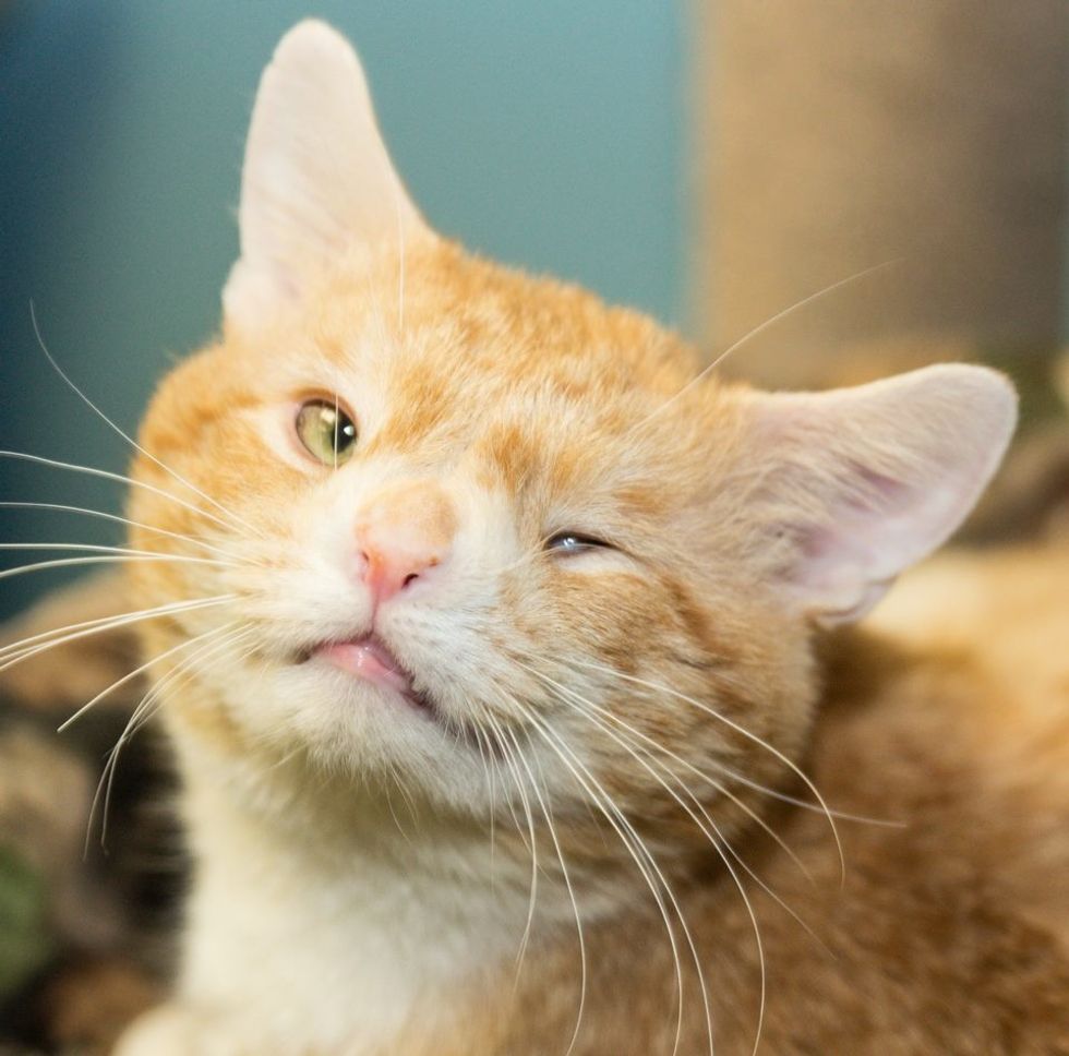 Hogan was born with a permanent "wink" in his left eye and a small and dainty nose. The little feline was friendly and wanted attention from the staff at Medina County SPCA right from the start.