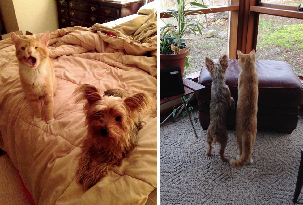 Every time Amber is in the kitchen, Hogan will watch and try to offer a helping paw.
