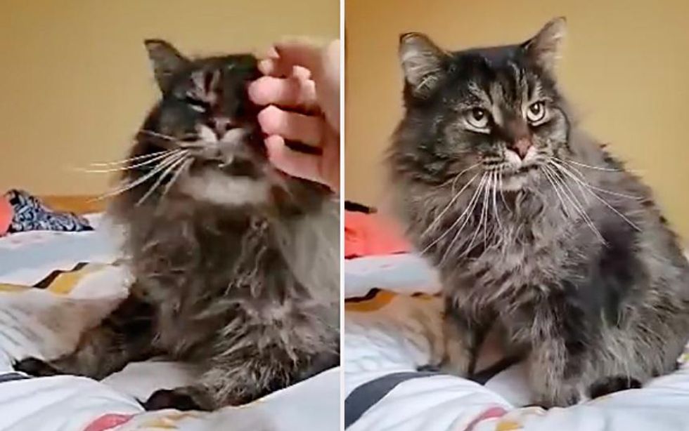 The cat was in rough shape and covered in filth and mats. "He couldn't close his mouth or bite his food (due to an infection), and had been living with pain."