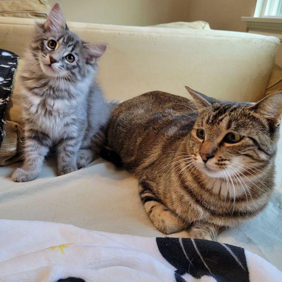 Periwinkle continues to be a mama’s girl—they play together and nap in a cuddle puddle. Having her daughter around has made Majesty feel like a kitten again and boosted her confidence.