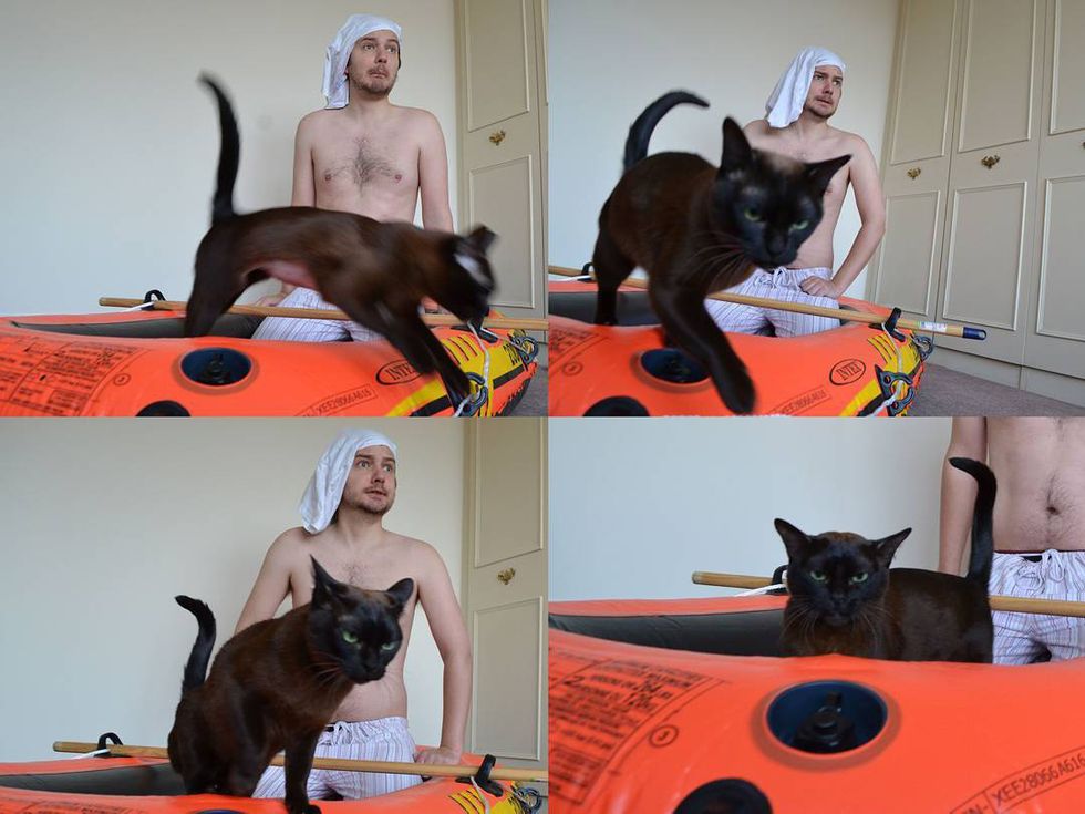 Put treats in the boat... Snap photos endlessly as cat demands more food from their humans.