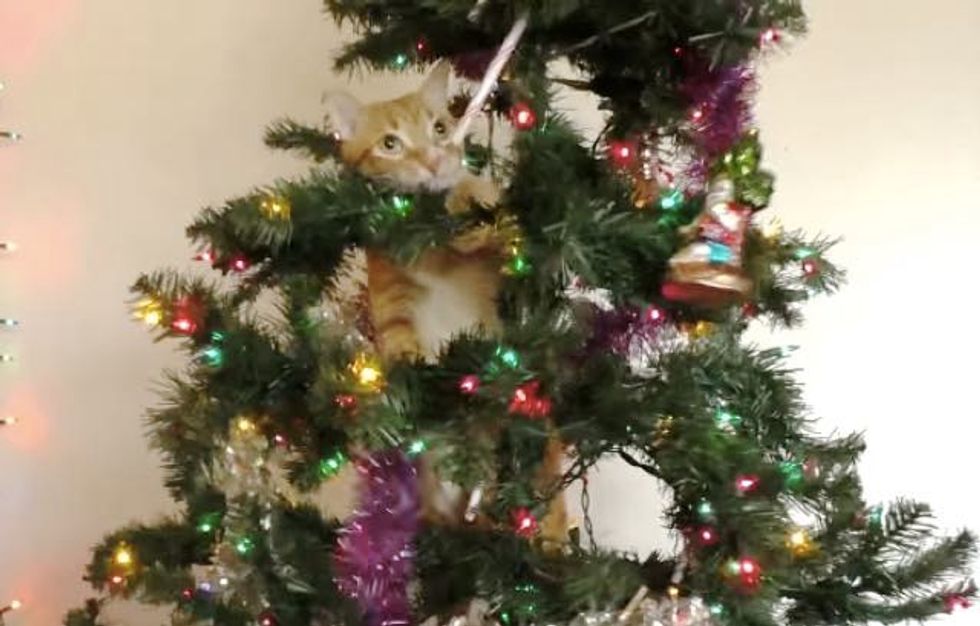 As their humans try to put up the Christmas tree, they are ready to 'help' and 'test' every ornament placed on the tree. Before the decoration is even completed, Marmalade is already half way up tree bending branches and kicking off ornaments that he vetoes.