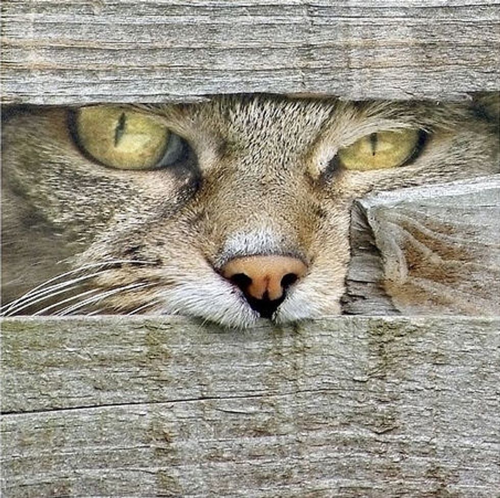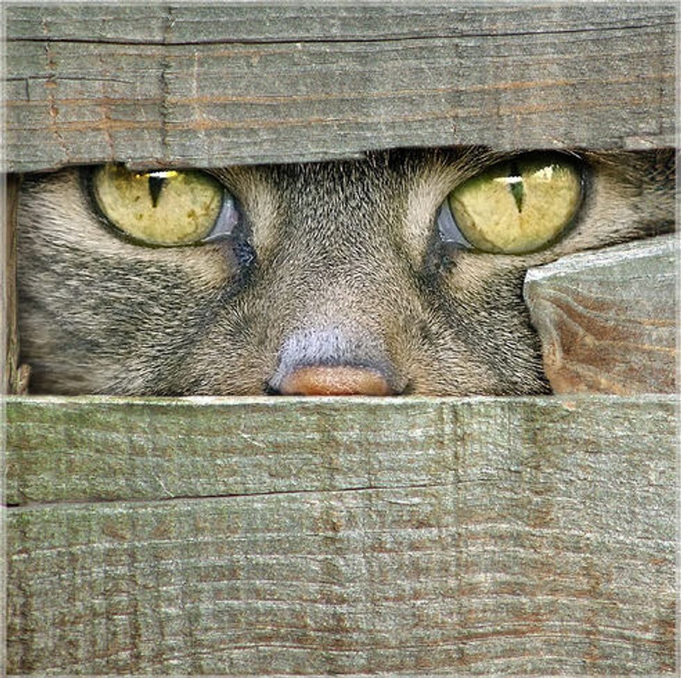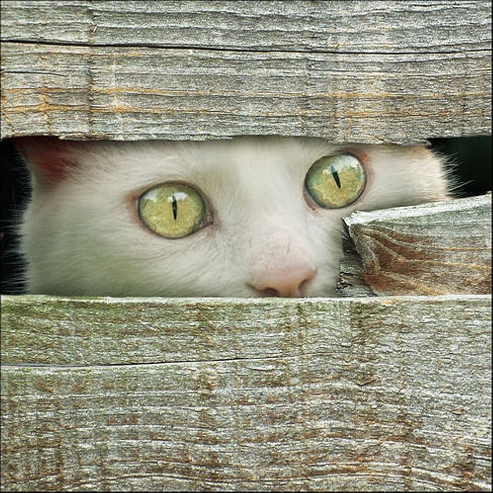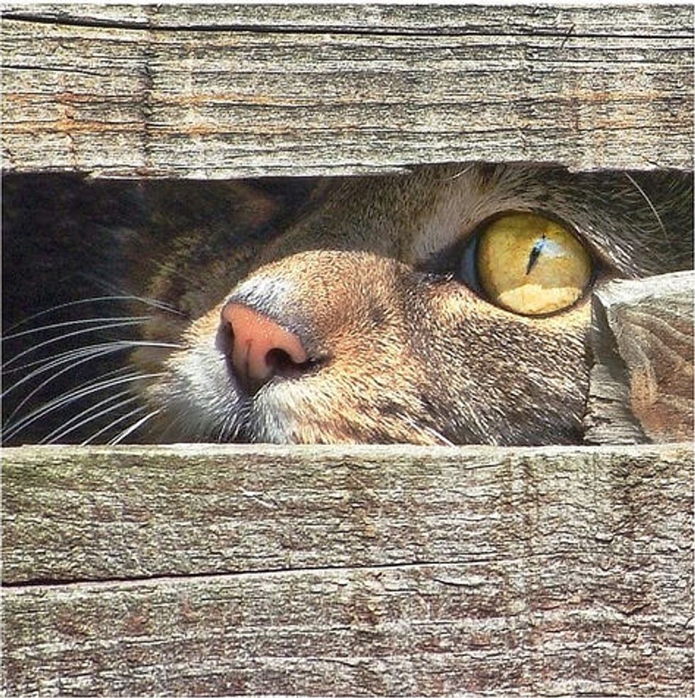 Adrian Campfield has captured many photos of his cats and his neighbor's cats staring through the crack of his backyard fence/gate. The images are absolutely stunning.