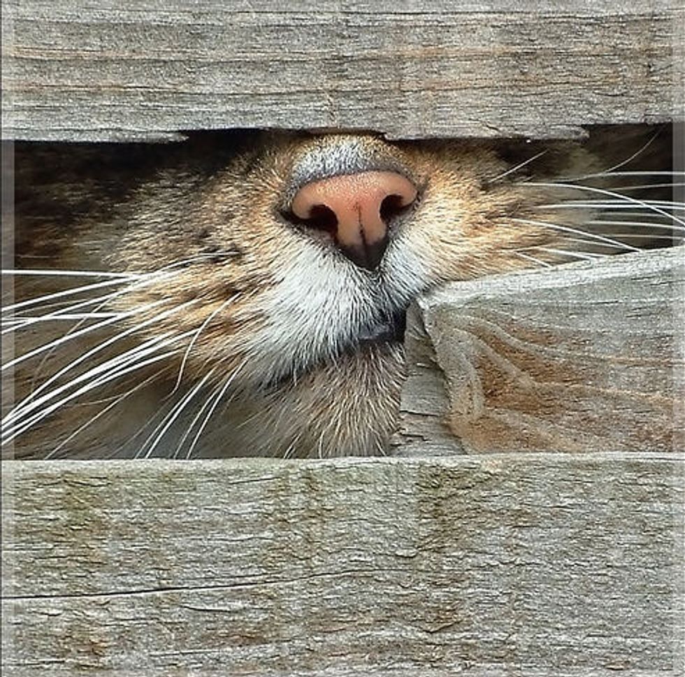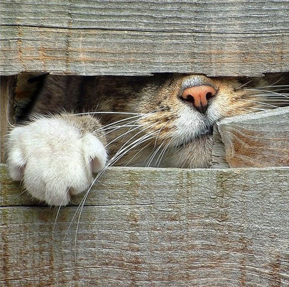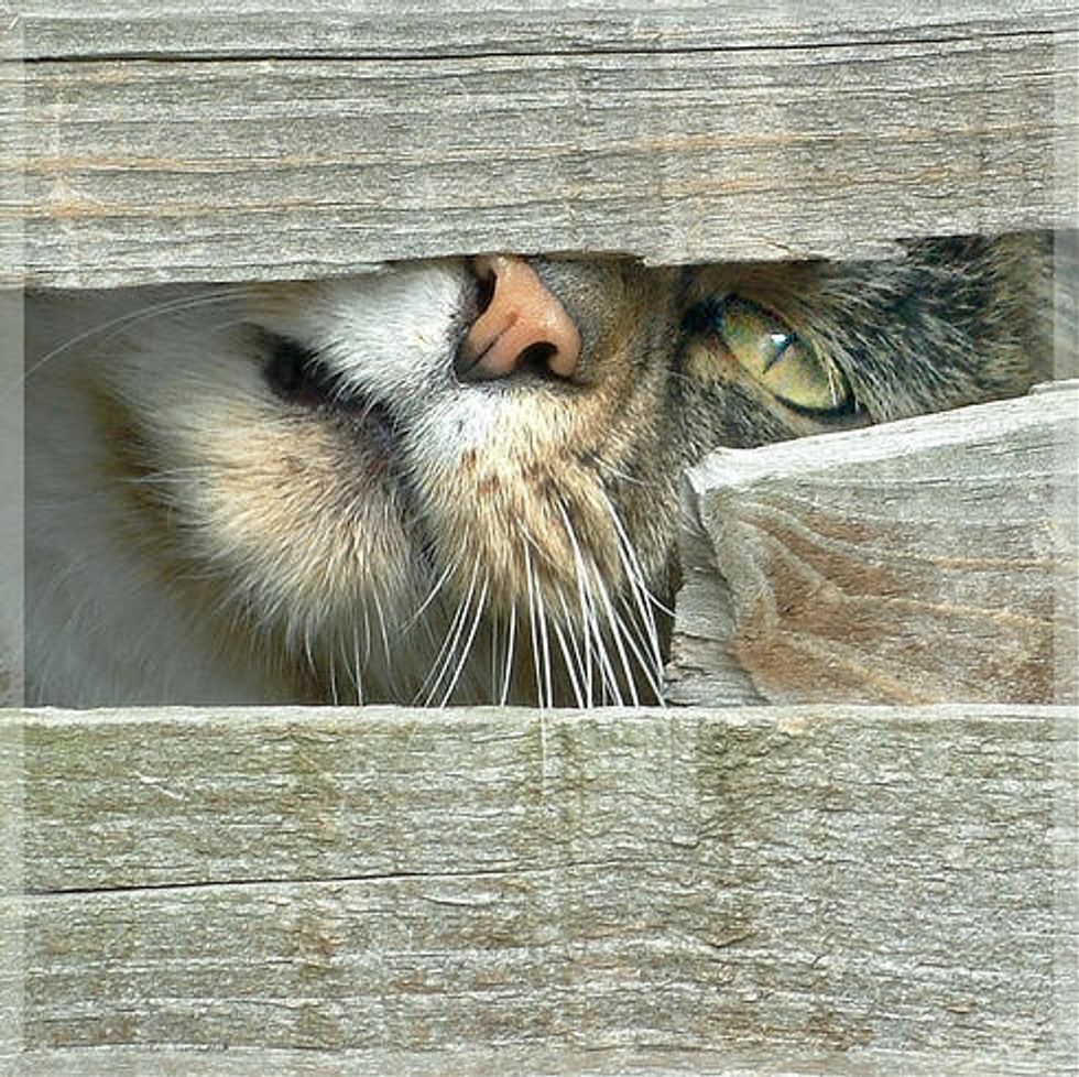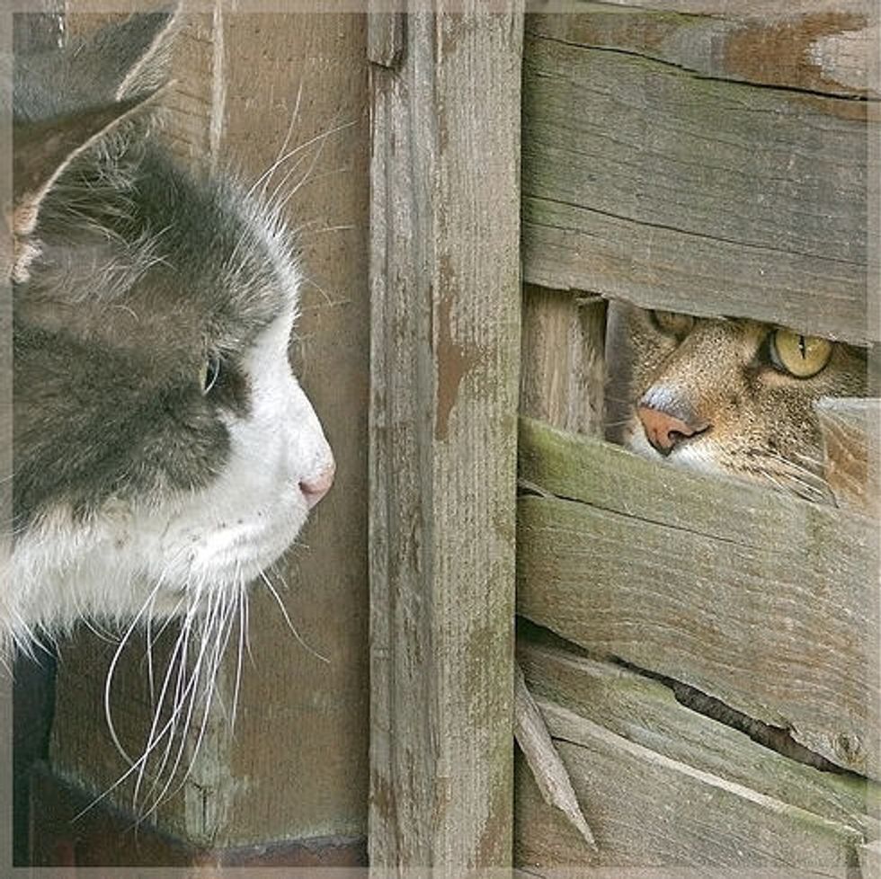 Adrian Campfield has captured many photos of his cats and his neighbor's cats staring through the crack of his backyard fence/gate. The images are absolutely stunning.