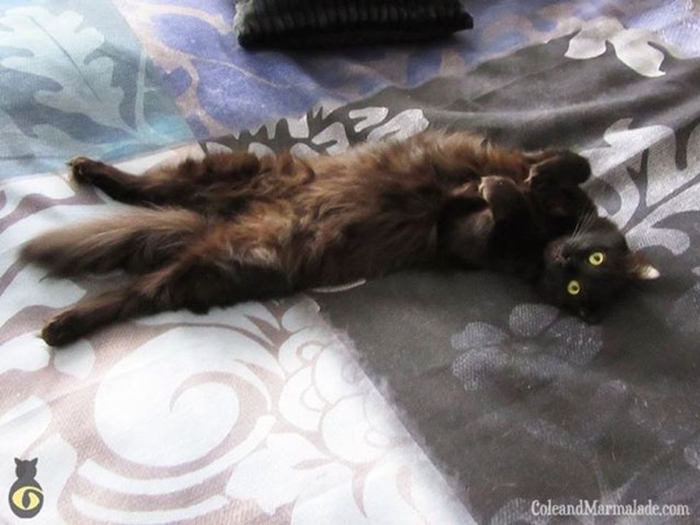 "We've had an open door policy," said Chris, the human dad. "Sure there's the occasional bump in the night and we're woken by the 'Marmalarm' a few times a week if he's hungry and we haven't woken up yet! … But we're rewarded with Cole snuggles and soothing purrs at bedtime so that works for us!" Follow them on Facebook.