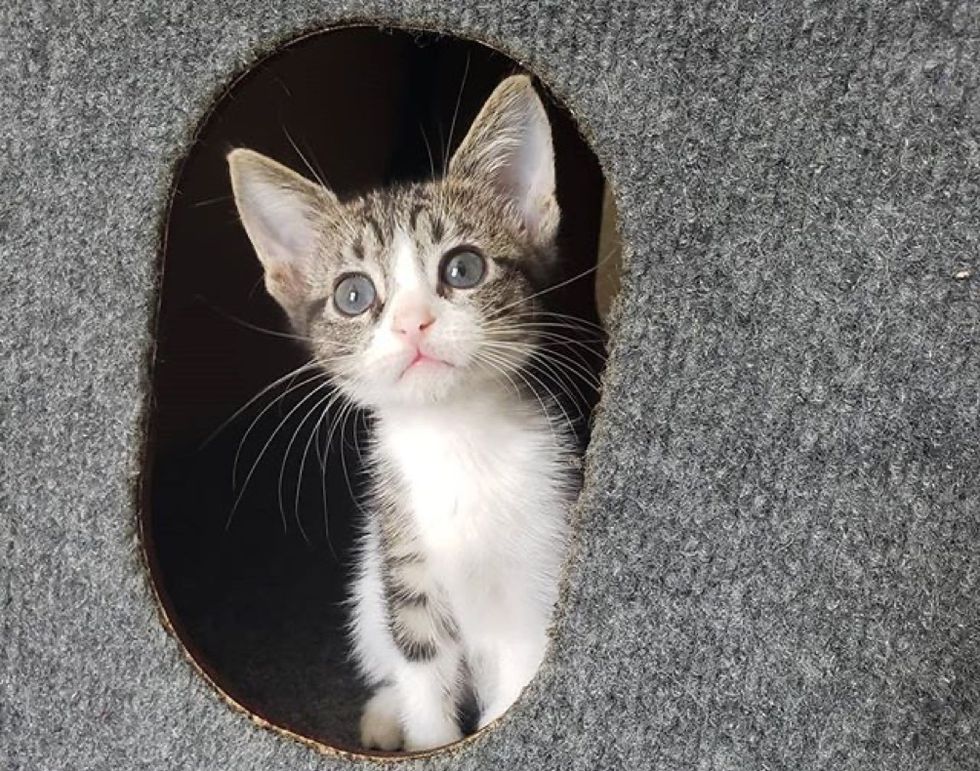 When the trio met Darby, it was love at first sight. They took her under their wing and wrapped their arms around her. The kitten instantly became family to this adorable clowder.