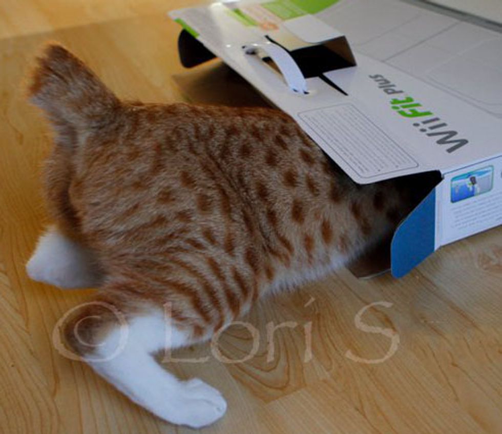 City the Kitty is a rescued part Manx (that's how he got the bobtail), part Bengal who always loves to get into all types of boxes if there is one. His tiny little bobtail always sticks out when he does it, super cute!