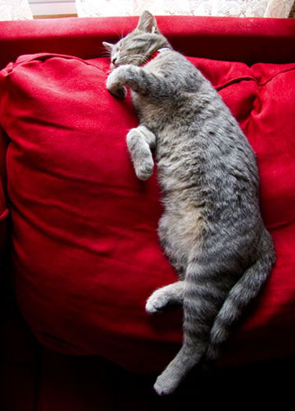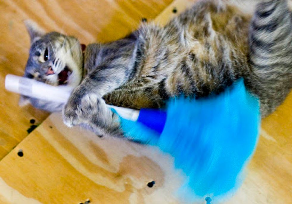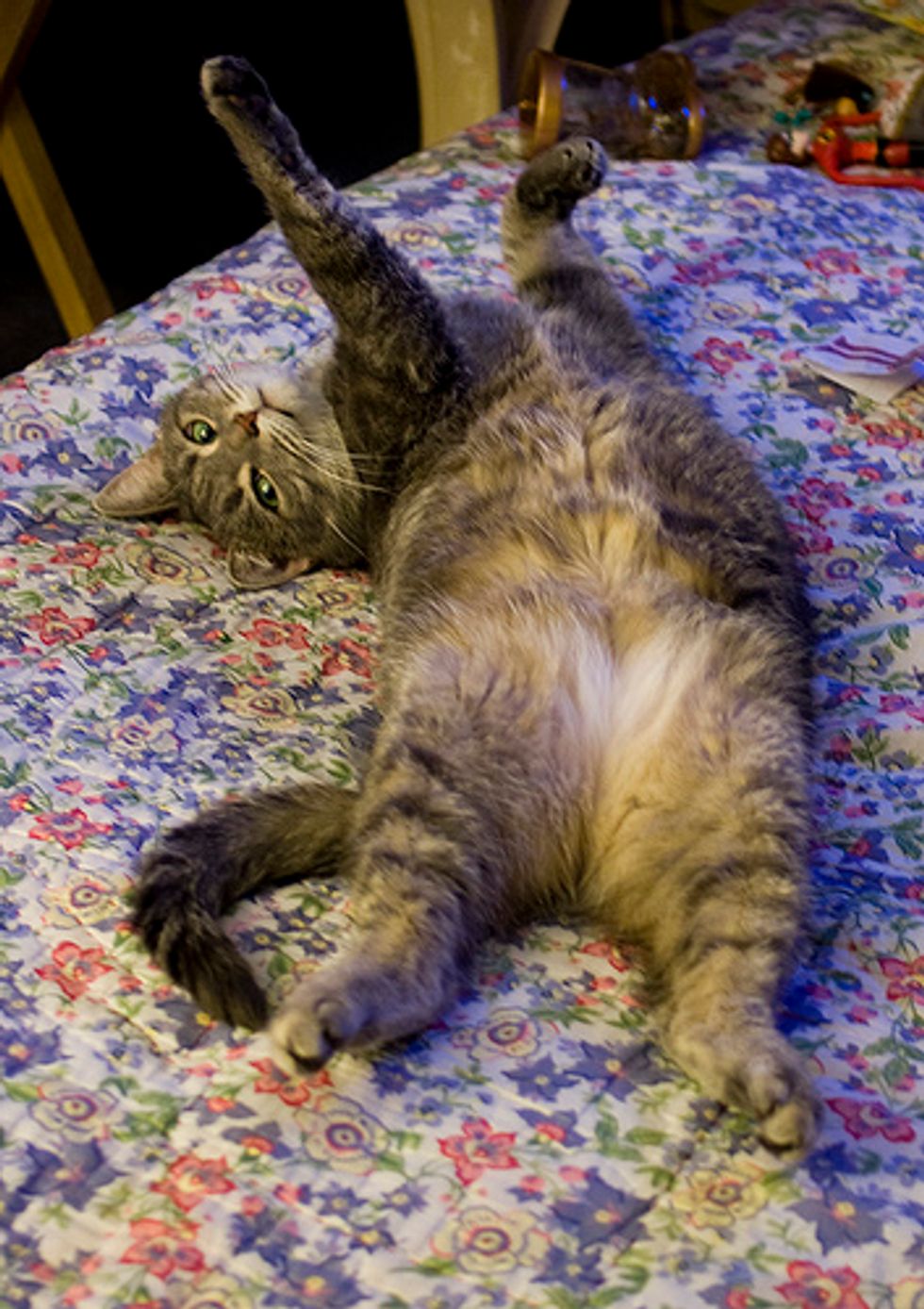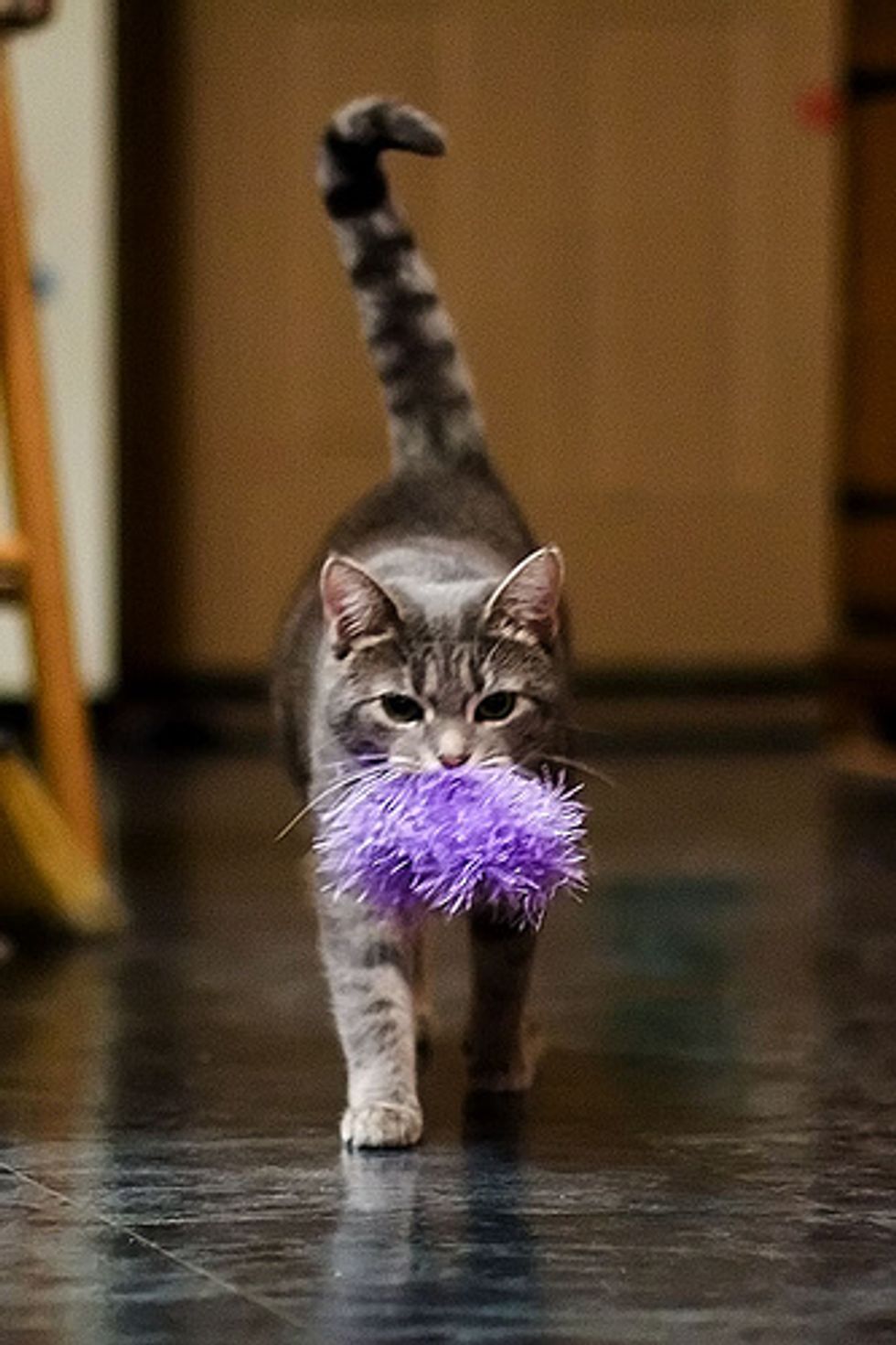 "Cloudy is a very vocal kitty who is obsessed with a good game of squeek-squeek (fetching her furry mice) and a good belly rub whenever you walk by her favorite rug--she will cut you off to get in position. Cloudy is quite the character."