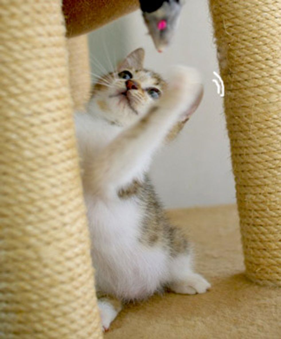 Within a couple days after they arrived in their foster home, the two little kittens became more and more comfortable and started to play with toys and each other. Though they were still a bit shy, it was a relief for Chika to see that they had finally come out of their shells.
