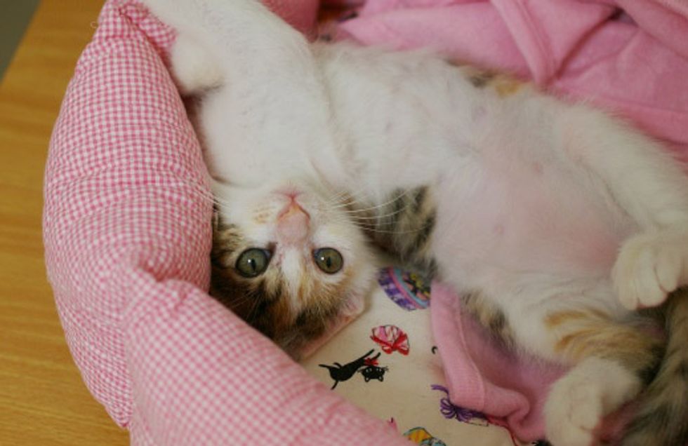 They moved the two little furballs into a room where they were separated from the other cats. They were approximately one month old, small, scared and very hungry. They wouldn't come out of the carrier, so Chika put wet food outside. Slowly they stepped out and sniffed at the bowl of food, then they took their first bite. From that point on Chika knew that they were going to be all right.