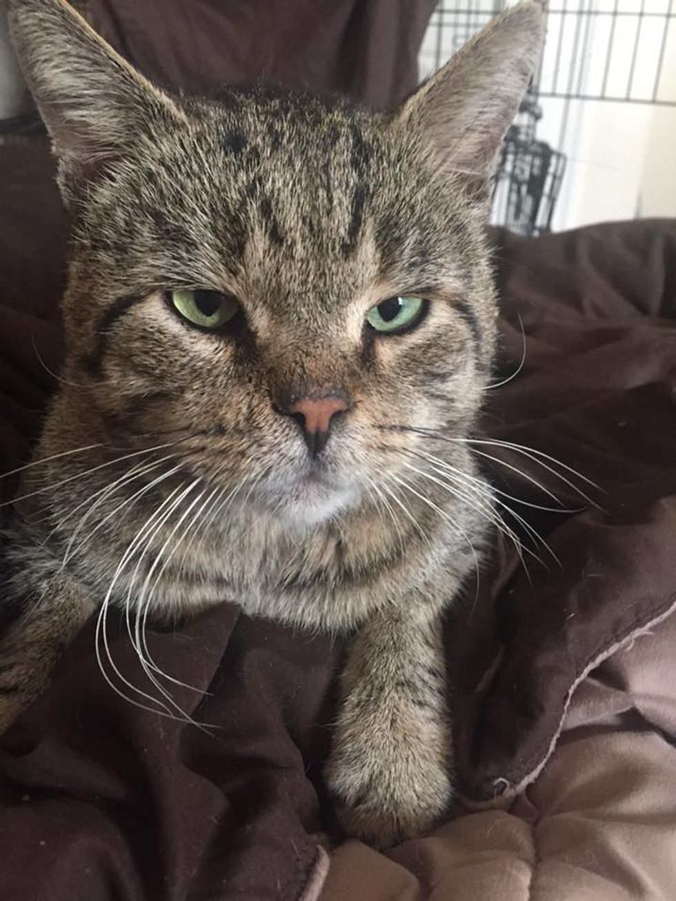 When it comes time to find Boss Cat a forever loving home, Sibley describes him as the following so his potential adopter will know what they are getting themselves into: