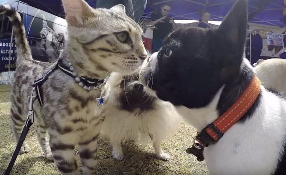 Boomer the cat befriended 50 dogs in one day like a pro. He gave each of them nose to nose kisses and even a few baths and showed them what a cool cat he is.