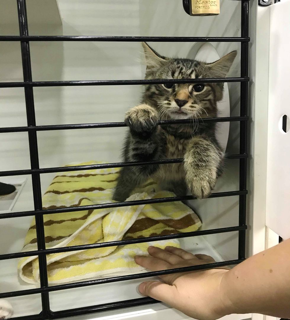 "We walked inside and they were laying in their cage with their paws wrapped around one another. They immediately hopped up and prodded their paws through the caging to reach out to us. They were not only affectionate but incredibly eager to get out of their small confines."