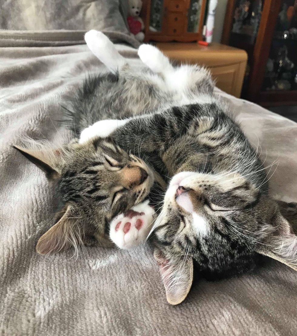 The couple made a trip to visit little Marlow. When they were taken to see him, they noticed another tabby in the same kennel and were immediately drawn by the bond they shared.