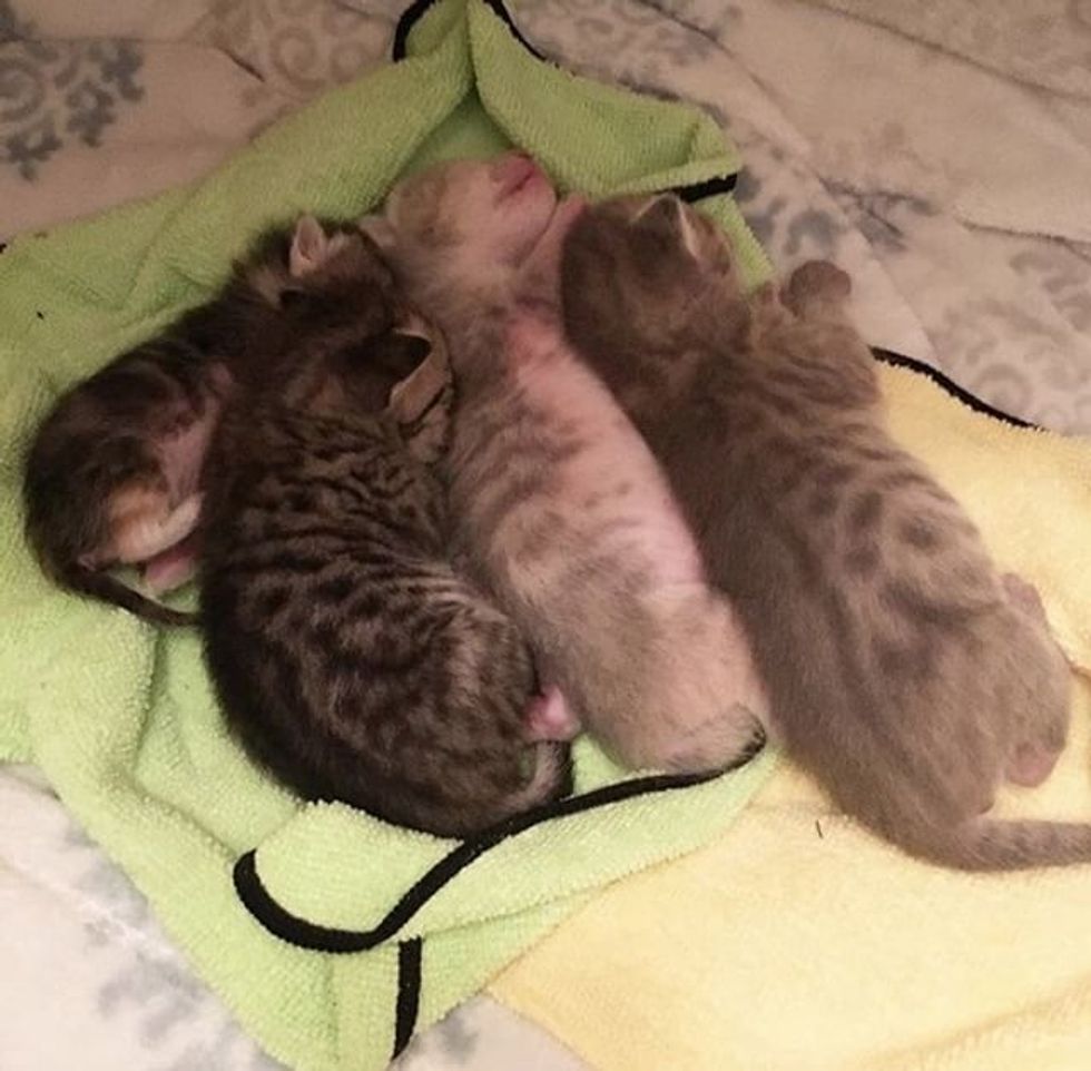 A stray cat showed up at a family's doorstep a couple years ago and decided to make it her home. "We immediately bonded so she stayed for good. A few weeks later I realized that she was pregnant," Alex told Love Meow.