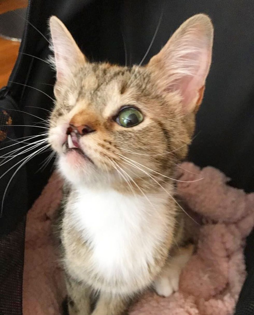 "She had defects on specifically one side of her body with the eye and nose. Luckily she is purrfectly healthy otherwise," Alex said.