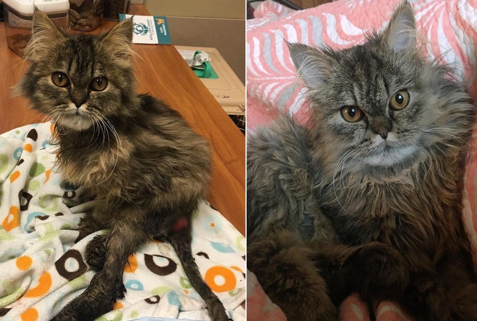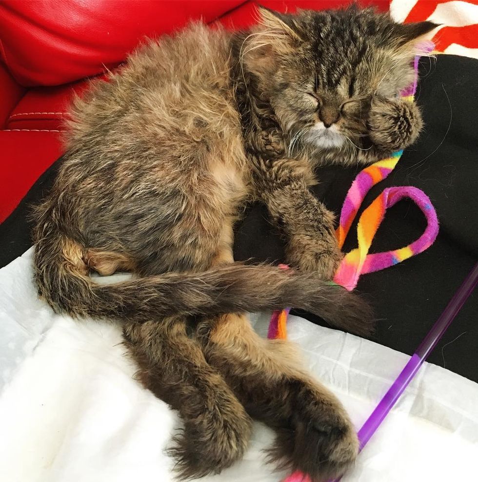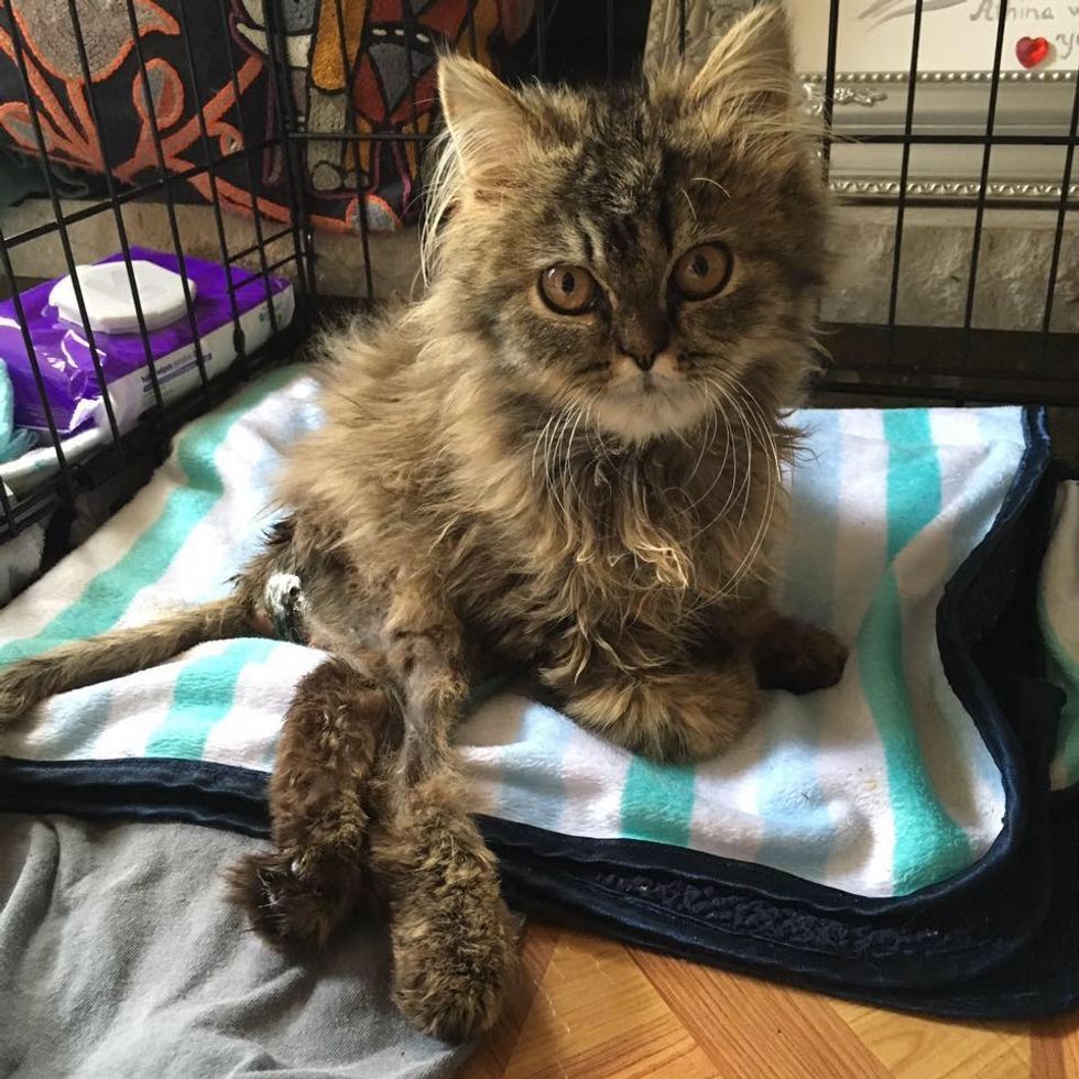 Despite not being able to walk, the kitty was in good spirits and just kept on purring. "He didn't know any different, all he wanted to do was play and cuddle."