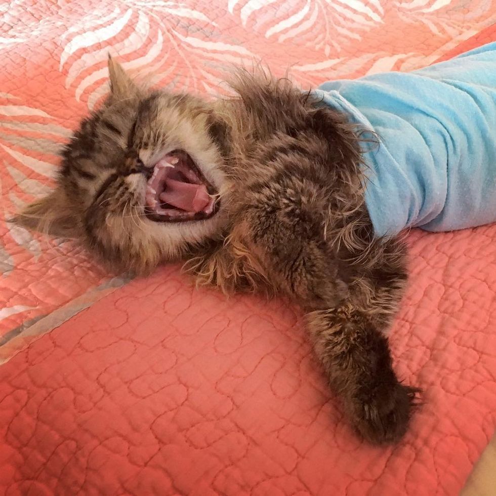 "He was flown into the US to get spine surgery and live a better life. Lt. Dan has overcome so many obstacles all while purring."