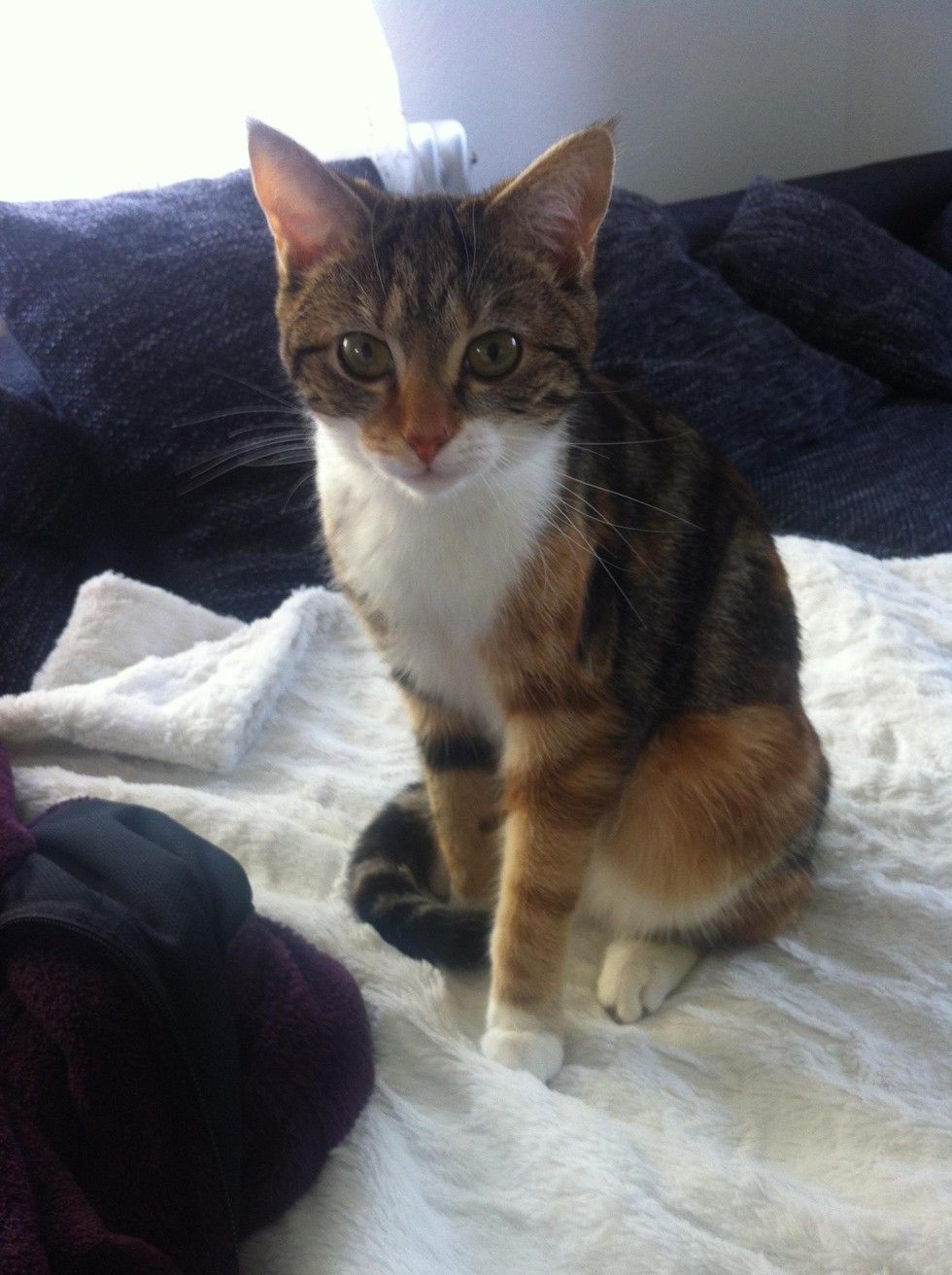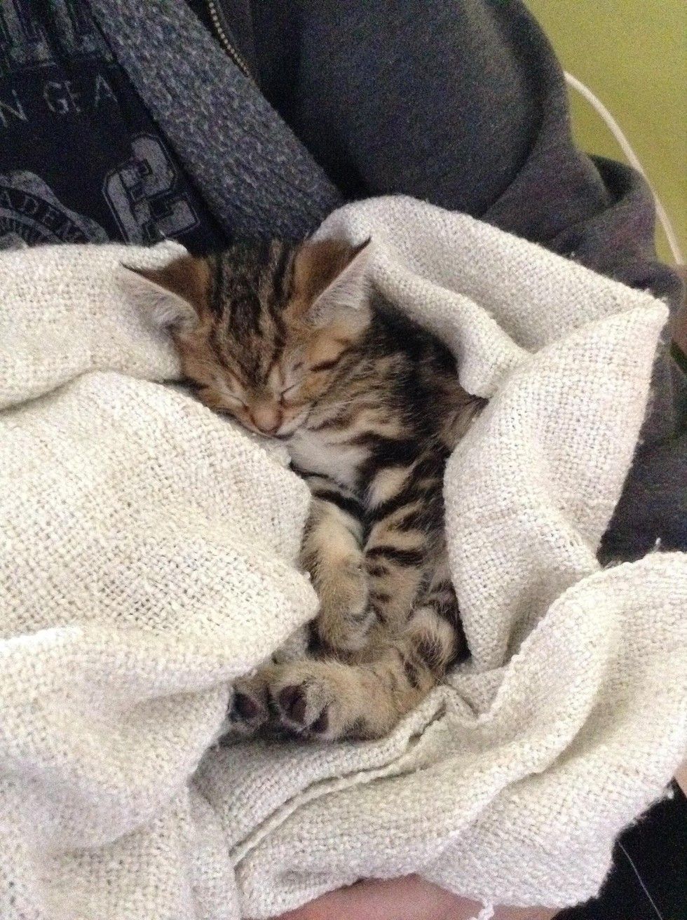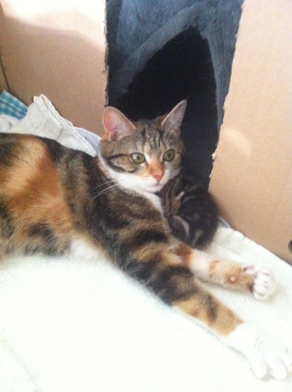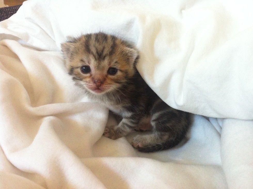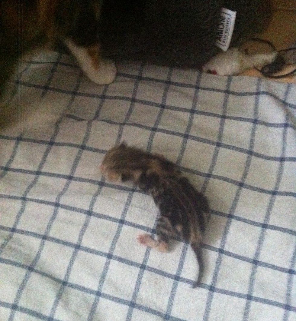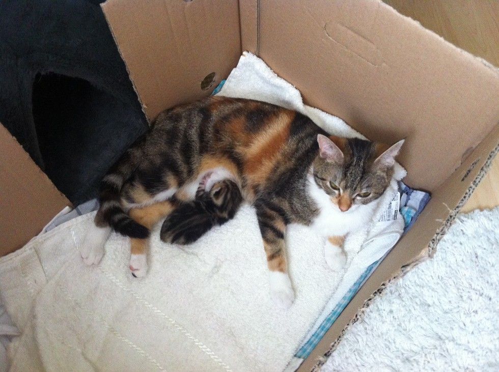 "She only got one kitty, that's unusual for cats but that's also the reason why we didn't know that she was pregnant. She was really slim for a pregnant cat."