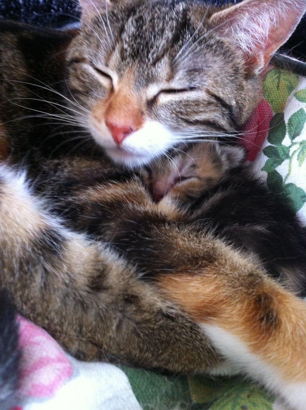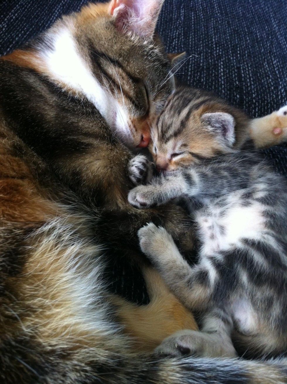 "She is the best mom, she protected him and both love to cuddle with each other."