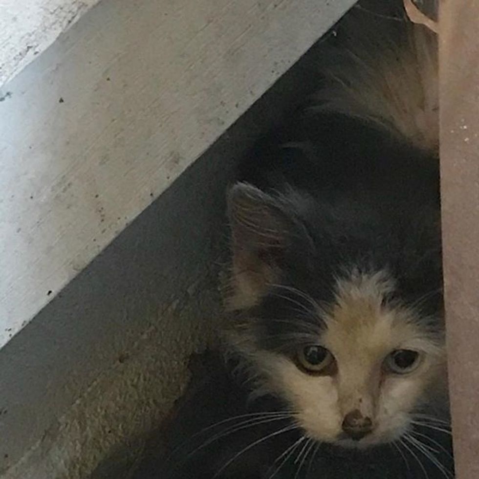 No one came forward to claim the kitten (now named Fluffy), so when the new year came around, they decided to try to rescue her. Betty would feed her three times a day, and each time, she would stay around, hoping to earn her trust.