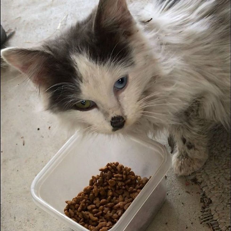 It's been a little over a year since they found Fluffy. She's grown to be a gorgeous cat with her beautiful blue and yellow eyes.