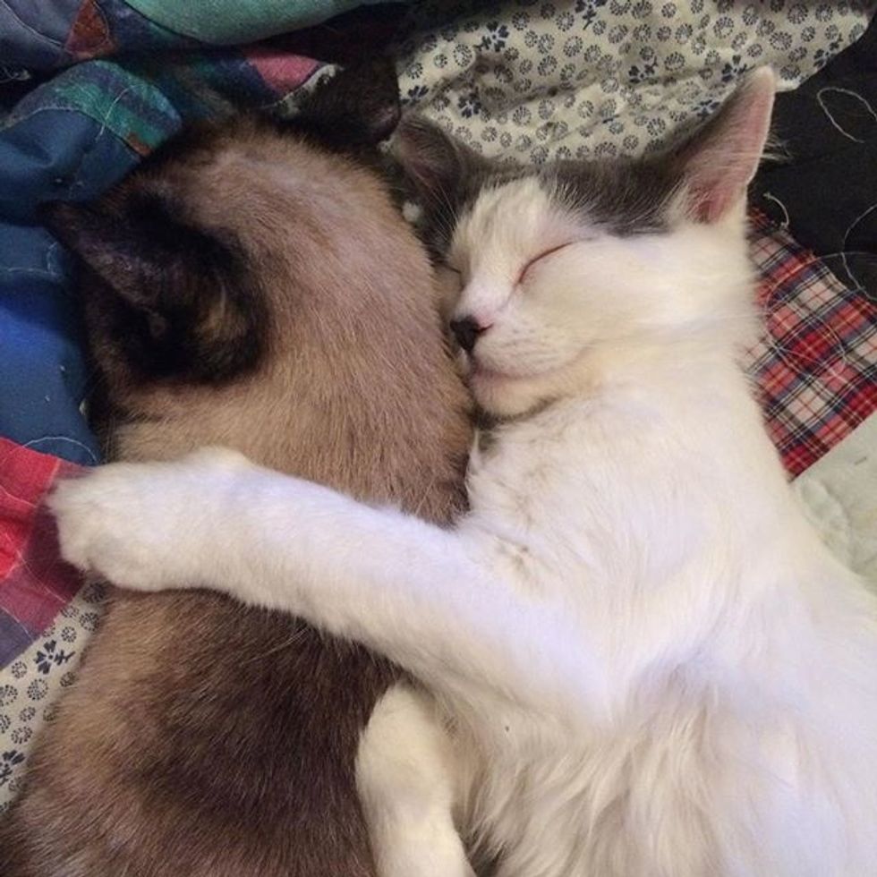 Their older resident cat Lacie quickly took to the newcomer. "They get along really well, and we have noticed that Lacie is more frisky now that Fluffy is with us."