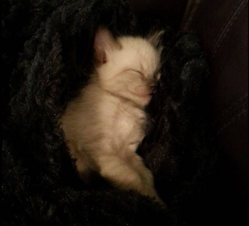 It was a thunderous night when a couple heard a crying kitten outside their house. "Upon investigation, under the giant tree like bush in our front yard we found one of our outside stray cats trying desperately to clean and shield this kitten from the storm," the couple said. (more info: imgur)
