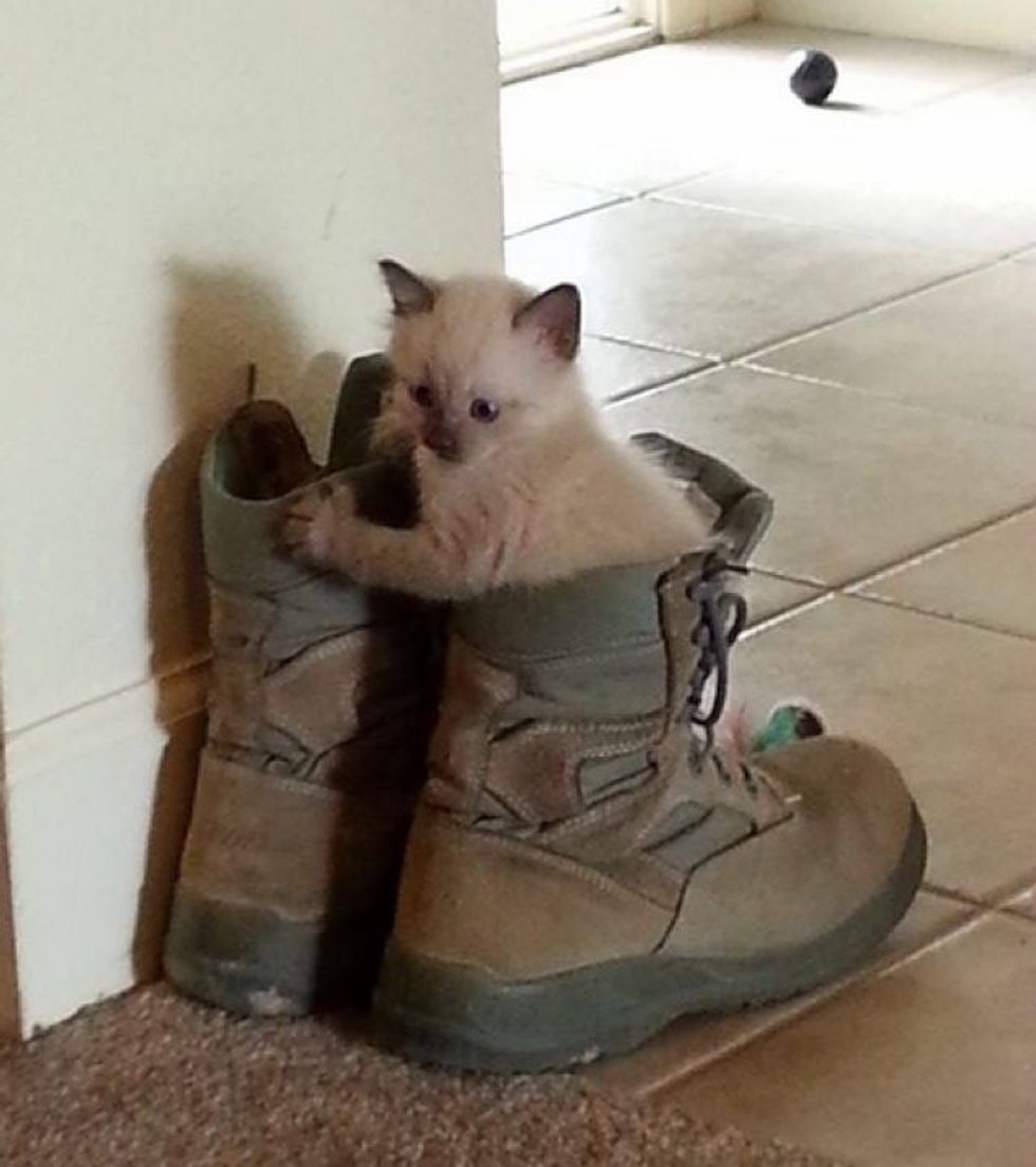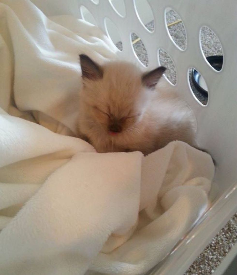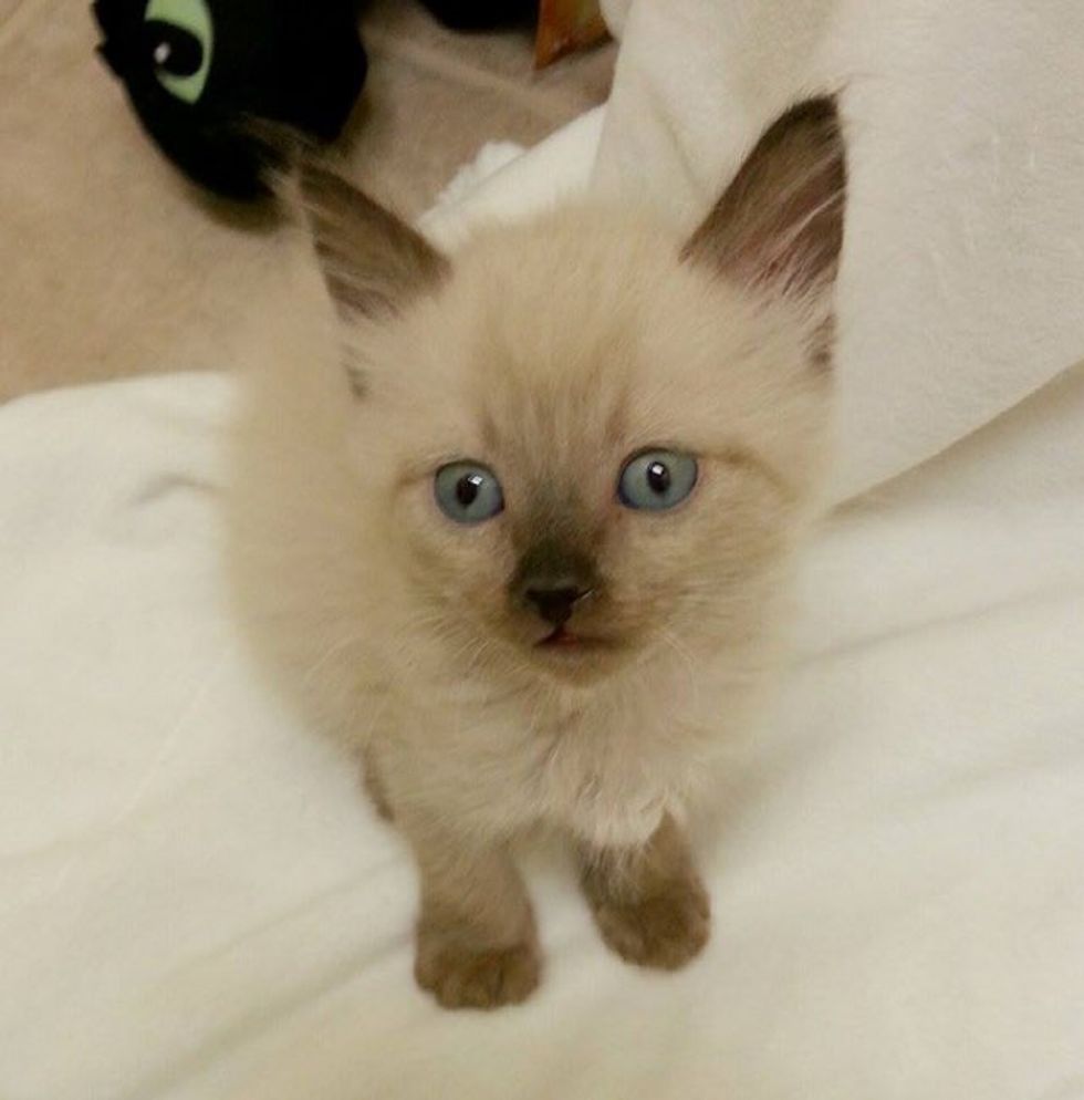 At the time, the couple were only allowed two pets in their home, so they found the kitten a foster family until they could find him a forever loving home.
