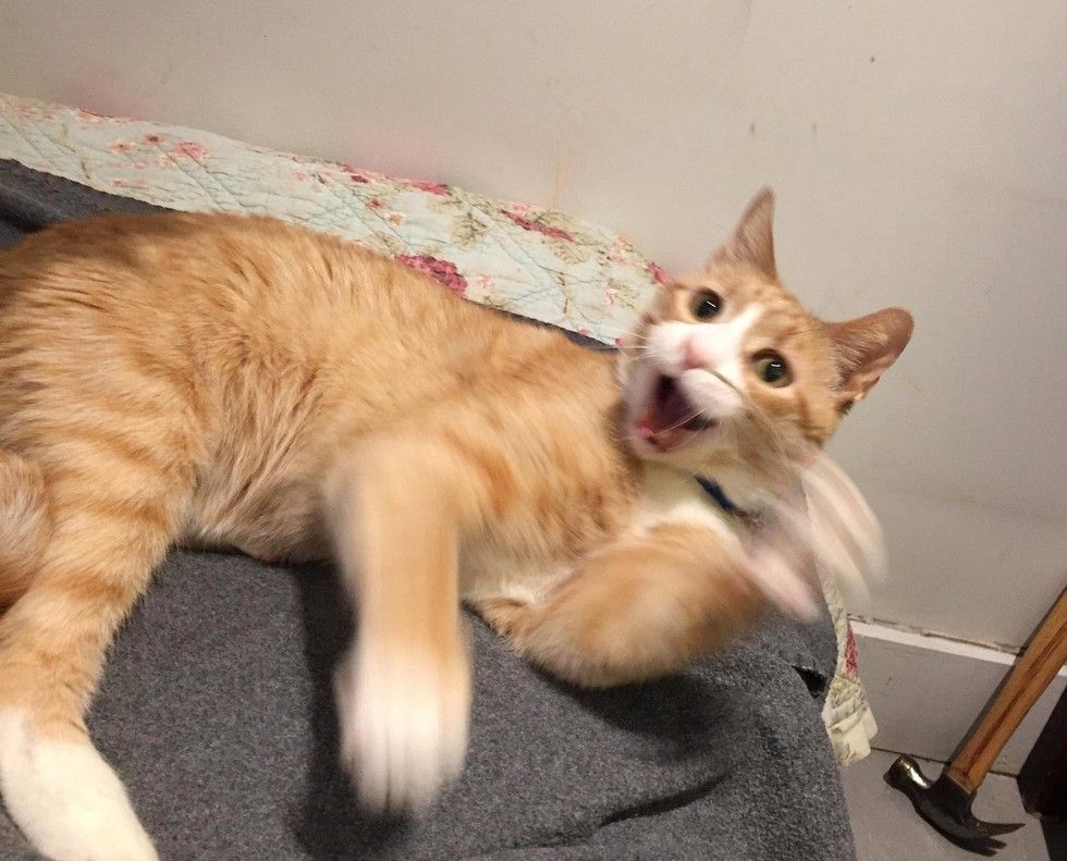When Danny's girlfriend, Hannah, learned from the shelter that the ginger cat was scheduled to be euthanized, she immediately contacted them and got him out in the nick of time.
