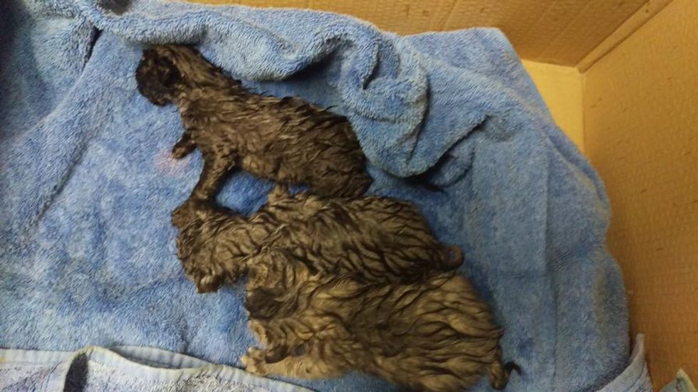 The kittens were finally dry and warm, but were still shaking. "I turned a heating pad on low under the blanket and covered them up, [applied] some more snuggles and rubs, and they were up to an appropriate body temperature!"