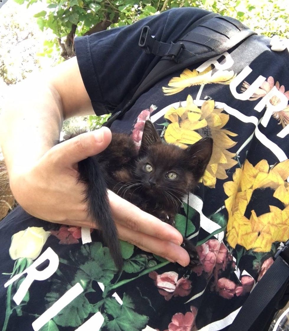 Justin Caffier and Erica Kim spotted the tiny black kitten, wandering on the streets nine months ago and knew they couldn't leave her. Justin reached out to Jacqueline DeAmor, co-founder of Friends for Life RescueNetwork, hoping she could help.