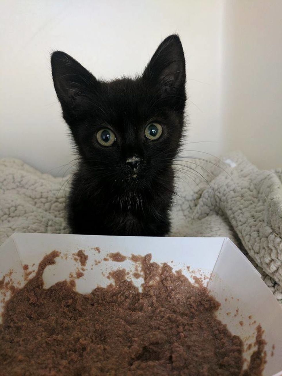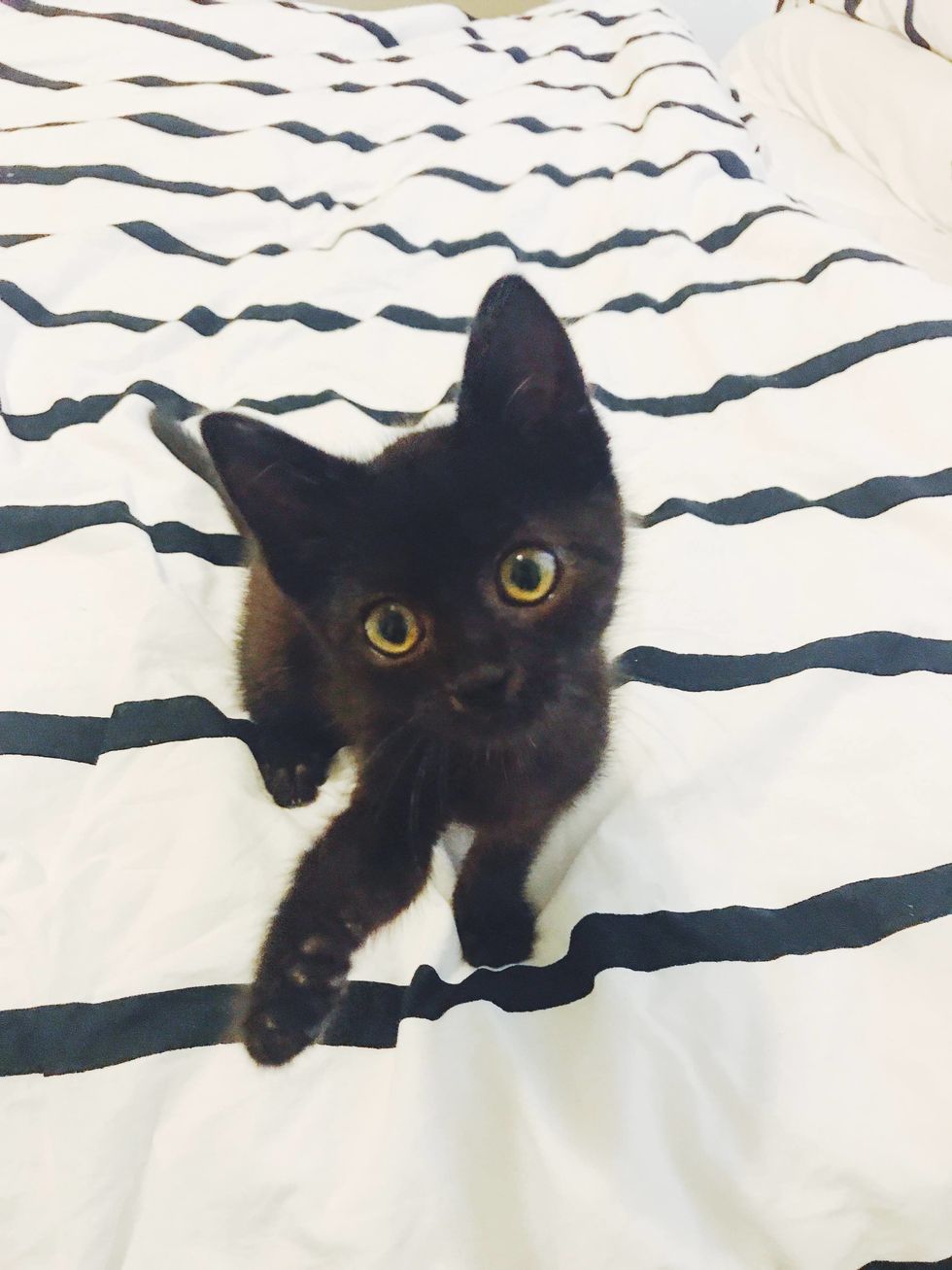 The scrawny kitten has blossomed into a gorgeous panther kitty.