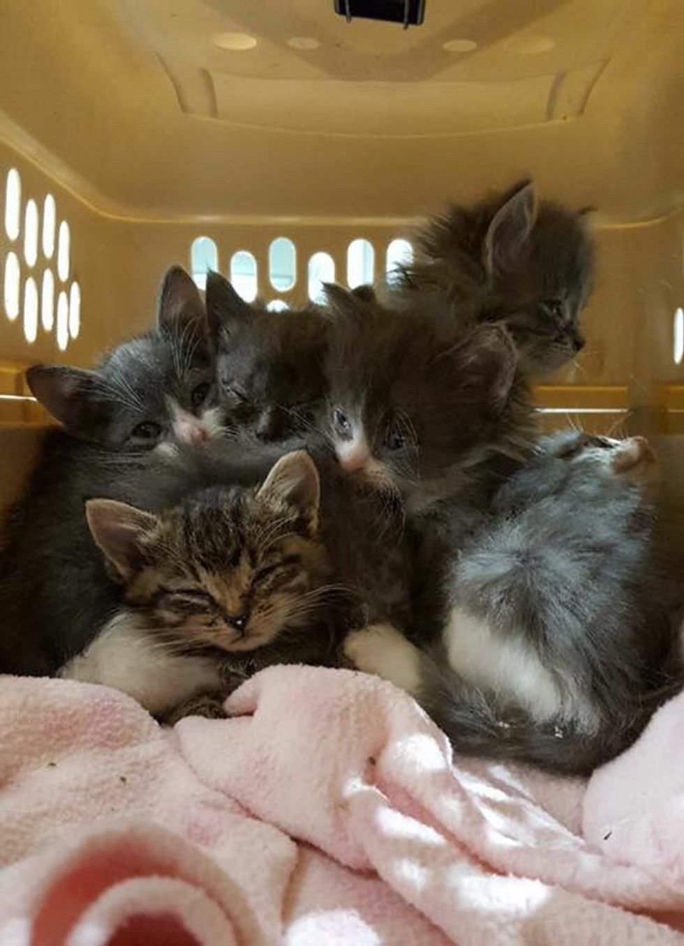 The five little kittens were safely transported to their foster home, but after the ordeal, they were a bit timid and stayed quiet for some time.