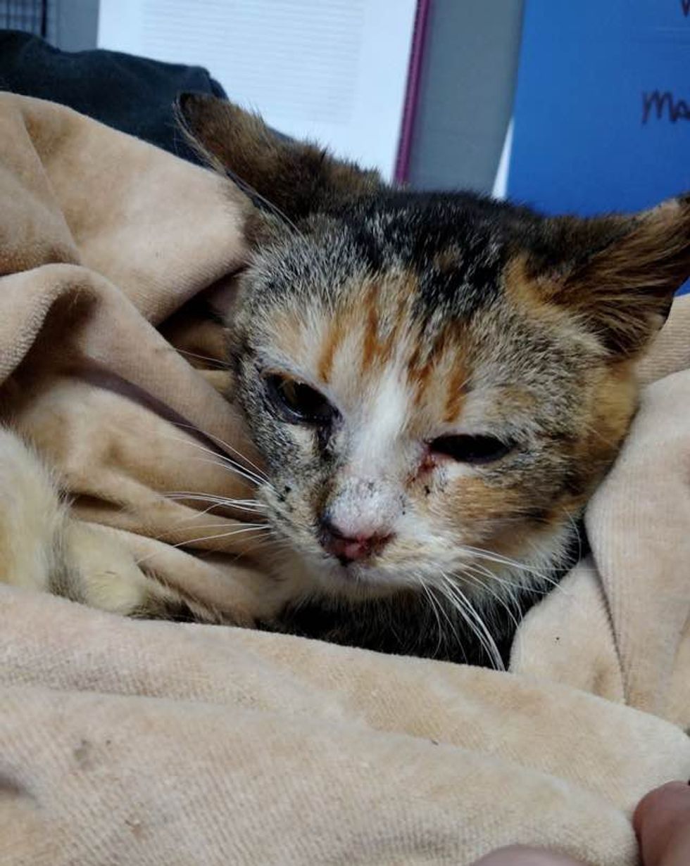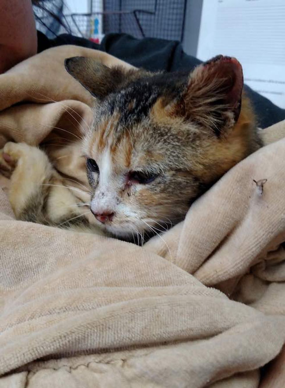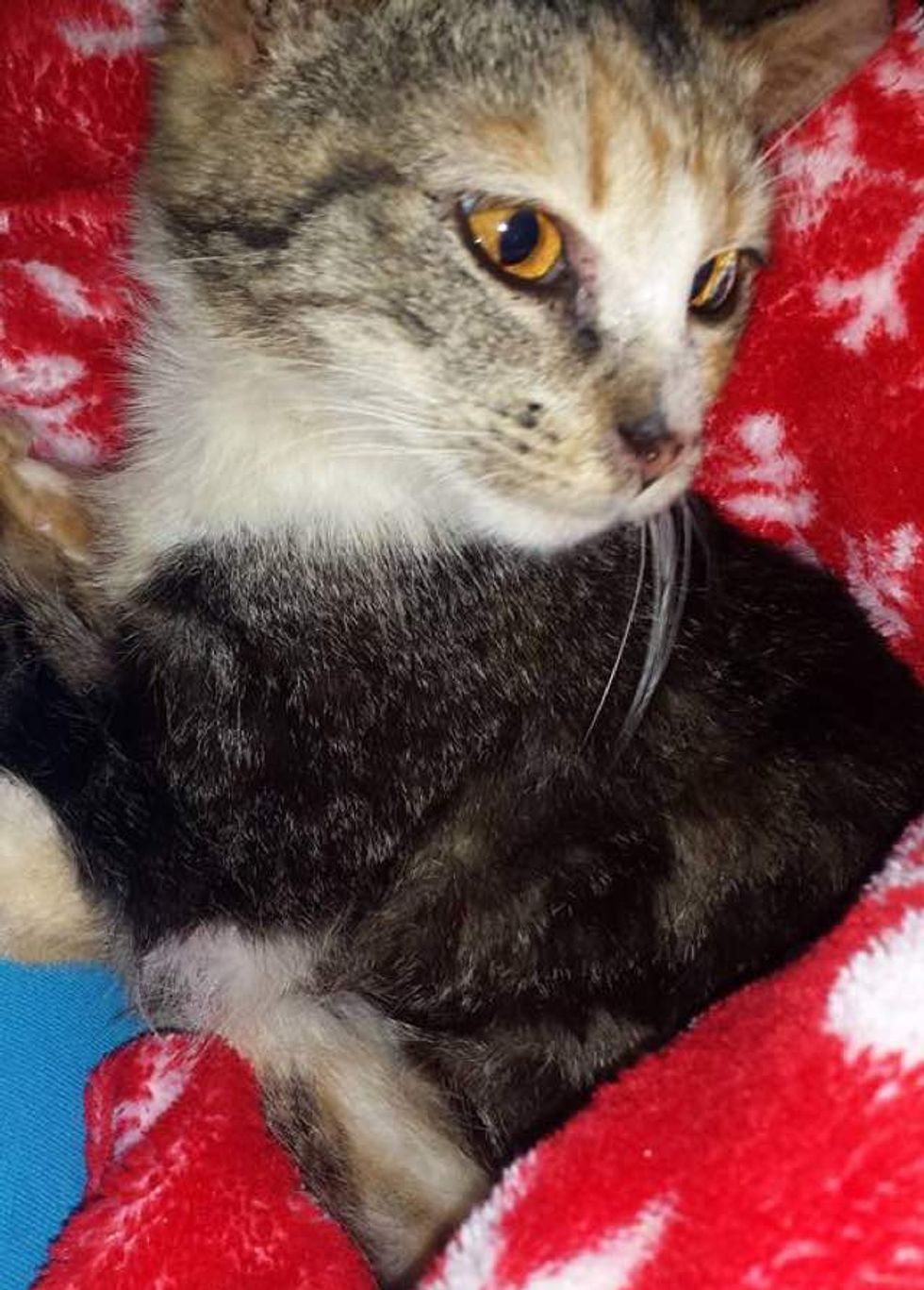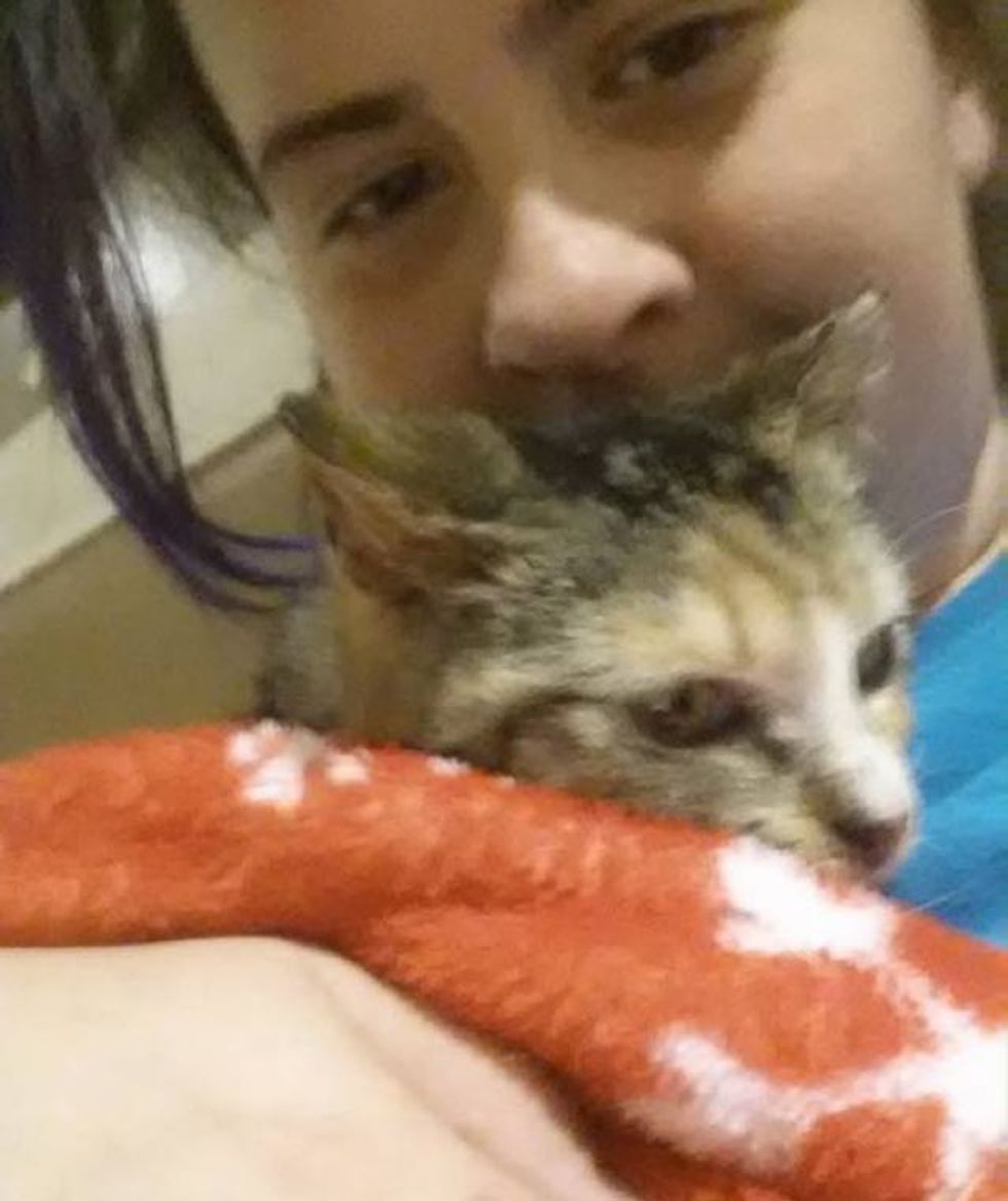 Adalena the little calico was saved last weekend thanks to the heroic act by a young woman.