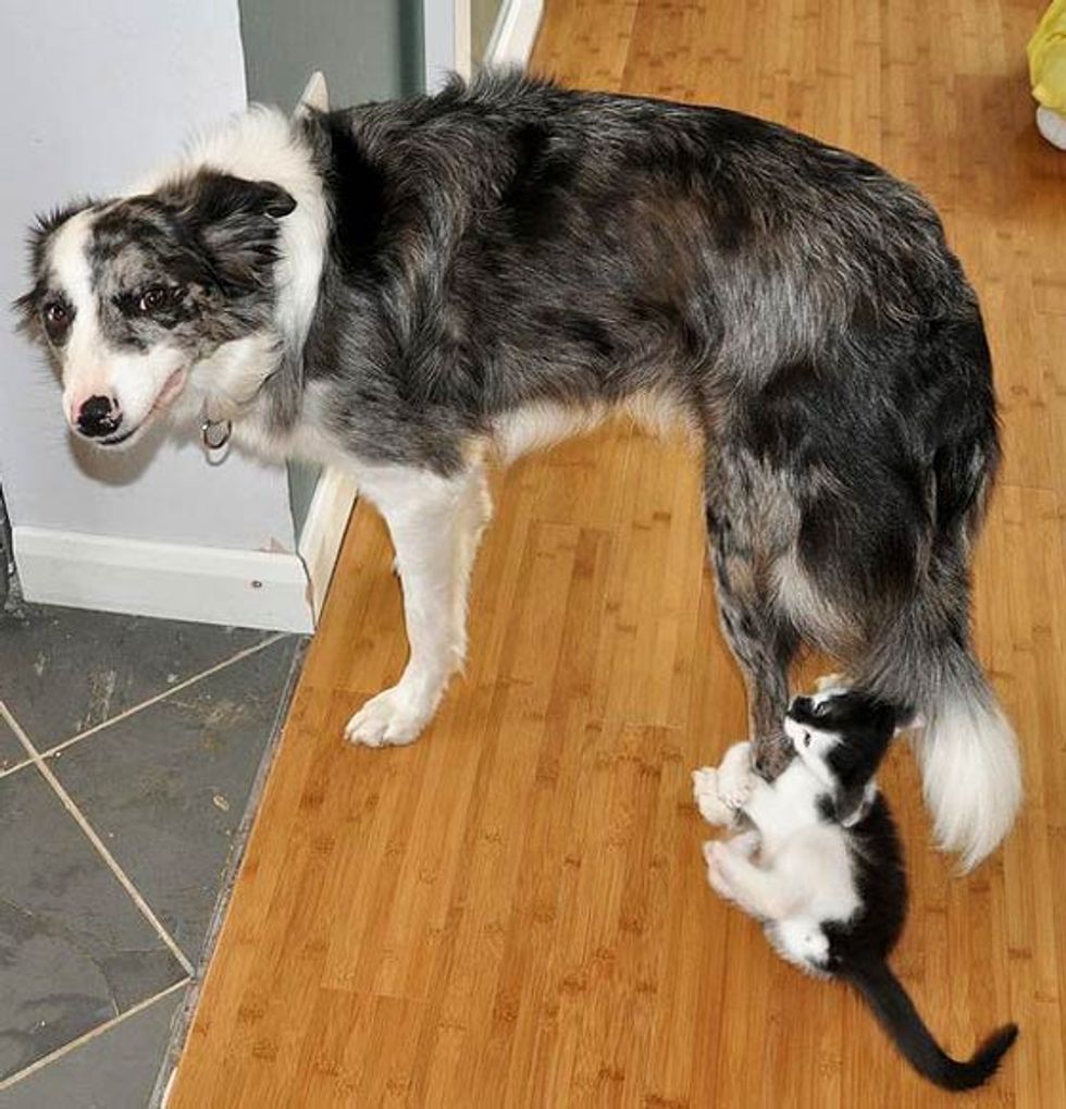 "Gorby and The Knife (Mac's nickname) get on like a house on fire. Mac will wait and attack Gorby. Gorby patiently allows himself to get attacked by a 3 pound kitten," their hooman said on flickr.