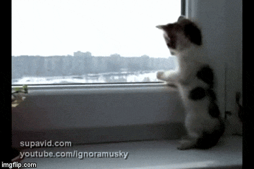 This curious kitten is standing on his two paws, looking out the window, checking out the world for the first time.