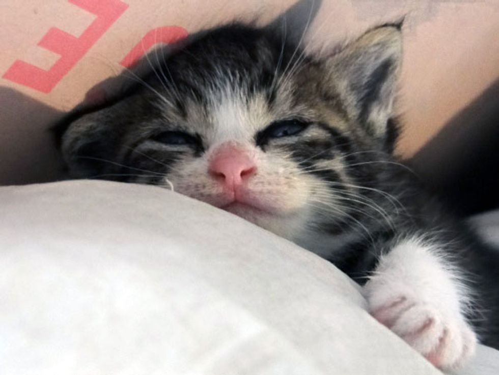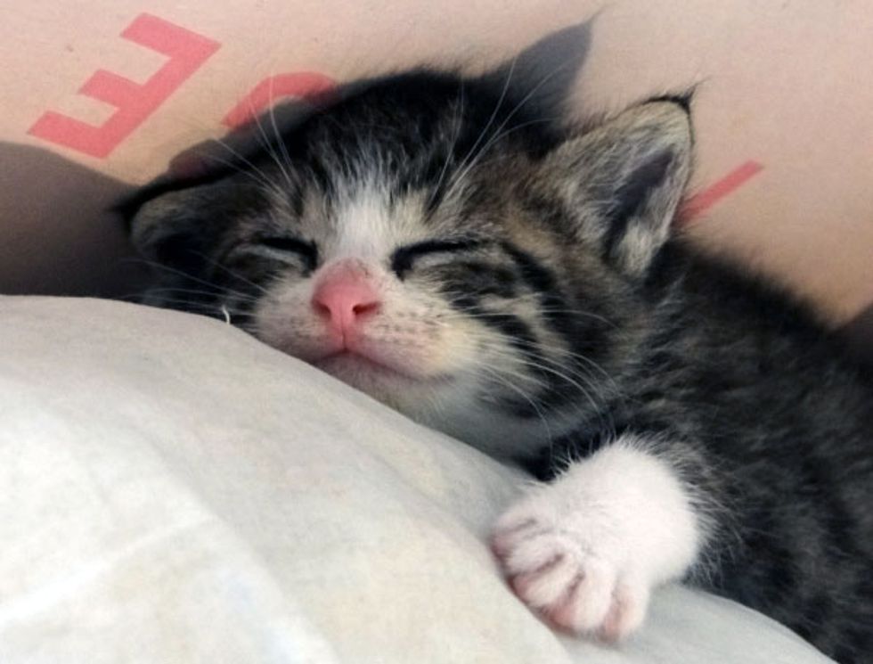 The little guy was given plenty of food and a comfy bed to sleep in. He was taken to the vet for treatment, and started putting on weight and became more and more playful each day.