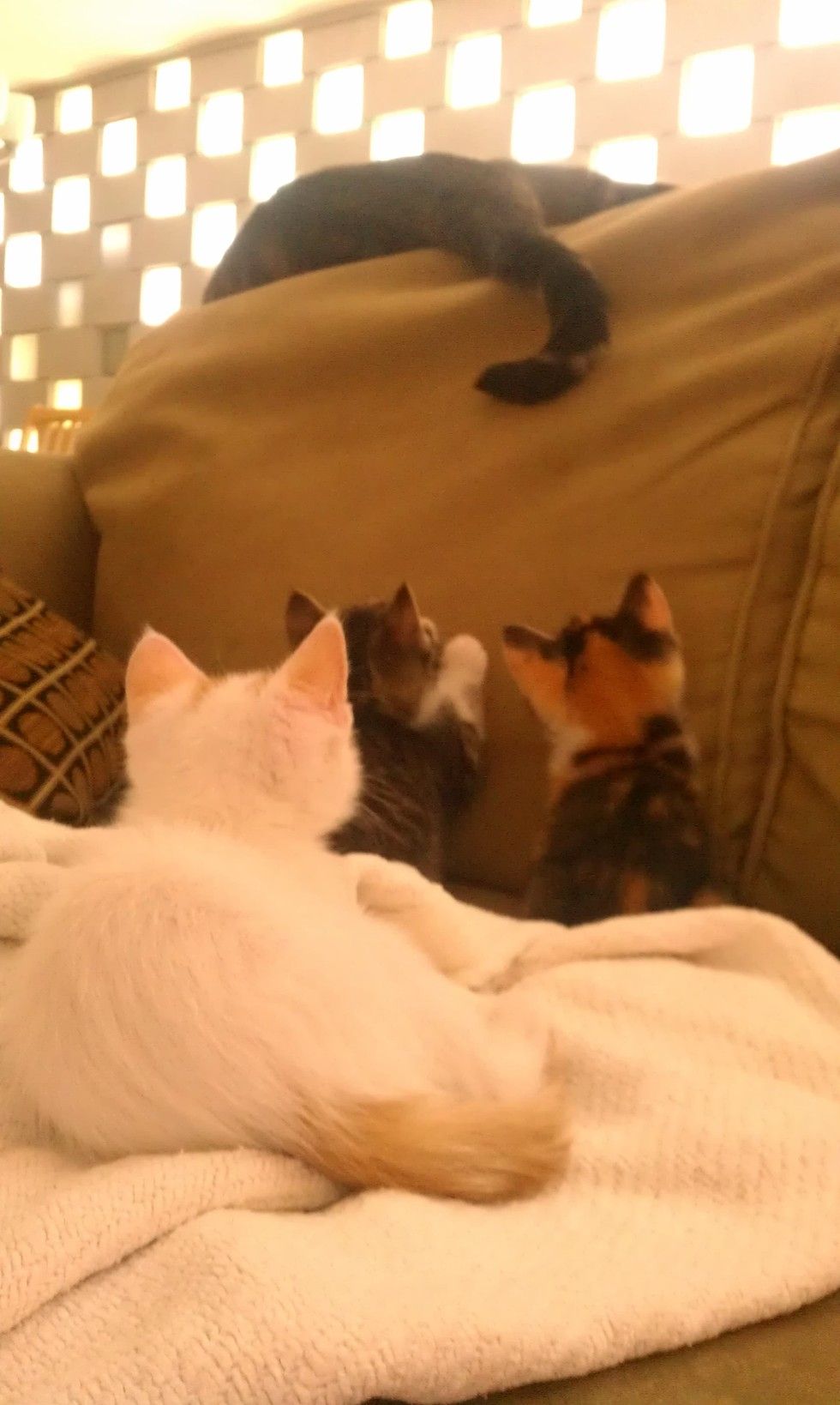 A litter of 7 4-week-old kittens was found on a roadside without a mother in May 2012. They were taken into a foster home. Because there were seven, they got temporary names after the seven dwarves.