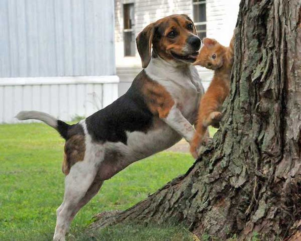 The little boy now named Scooter is Molly's kitty. She has taught him how to walk, climb trees and watches over him whenever he is playing in the backyard. She is very protective of her little feline baby and doesn't let him out of her sight. At the end of the day, they always snuggle together for a long nap.