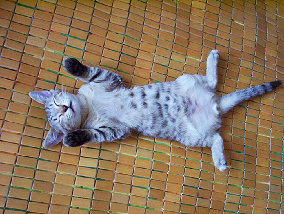 This is Duoduo, a lovely Bengal kitty who loved to snooze. He liked to sprawl out his legs and lie on his back when he napped.