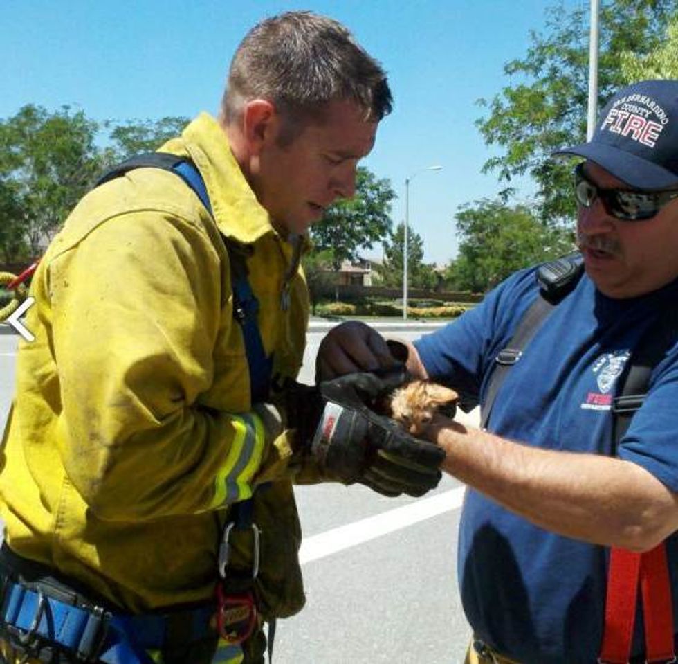 Eight firefighters including the Urban Search and Rescue team unit were immediately dispatched to save the kitten after they received the phone call around 9:22AM. Initially they tried to use tuna to lure the kitten out of the drain, but that was to no avail. Then they sent in equipment to check the oxygen levels to ensure there weren't any toxic gasses inside. A firefighter crawled in in an attempt to reach the kitten. According to San Bernardino County fire Capt. John Lansing via Fontana, "He was on his belly pushing with his feet and his hands to inch his way toward the cat, so he was pretty physically exhausted when he was done."