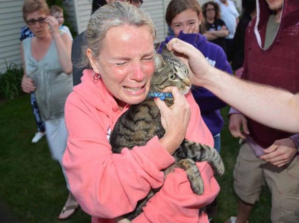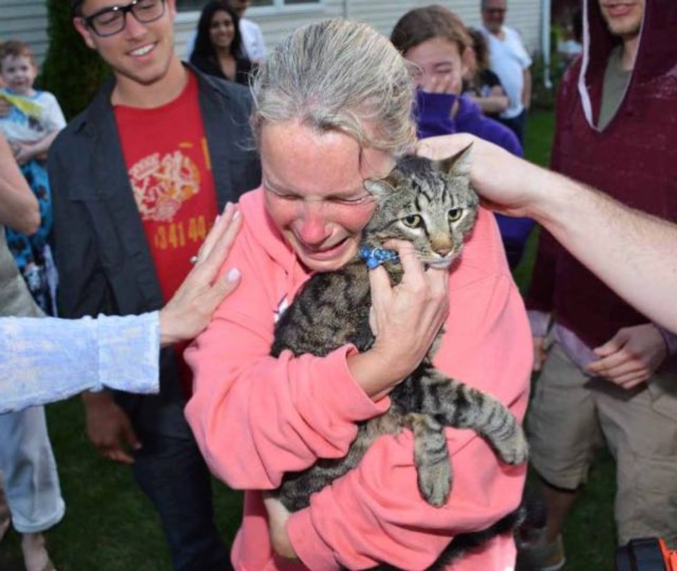 It was an emotional reunion! She couldn't believe they had found her beloved cat.