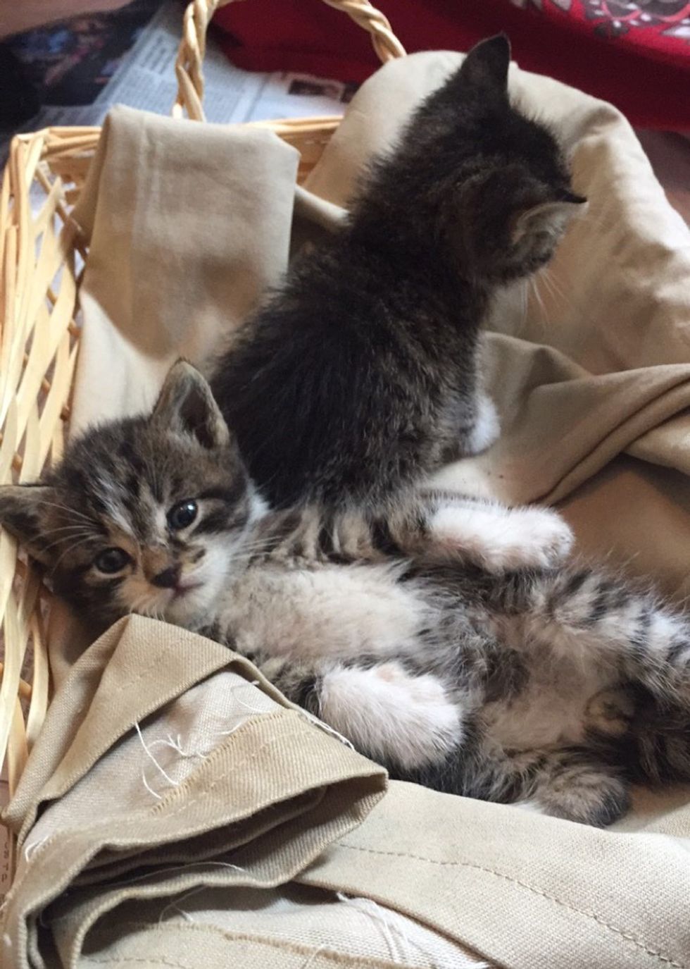 "The main reason we think the kittens let us rescue them was because they were infested with fleas, so much that they were very lethargic. Luckily we were able to get them to a vet in time to be scrubbed clean."