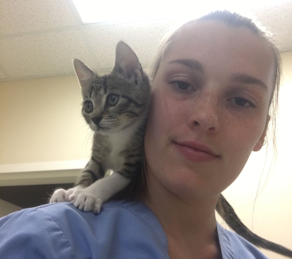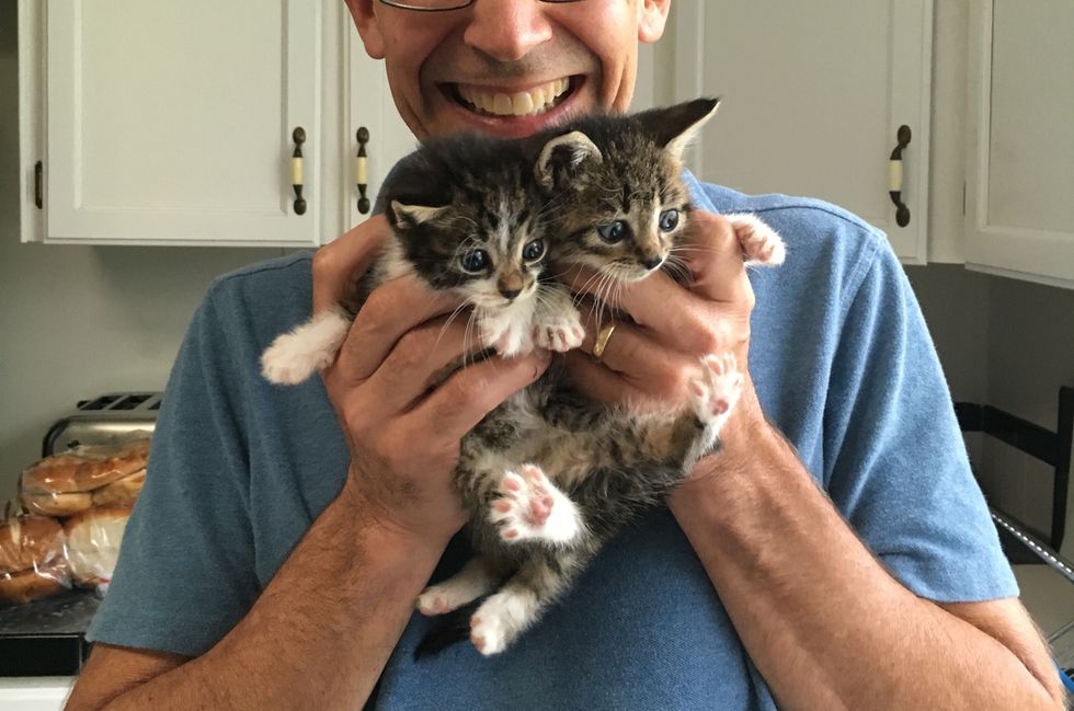 One of the employees offered to take two of the kittens, and Ike knew that he couldn't go home that day without helping the other two. He called his family to let them know that they were bringing home two little kittens.