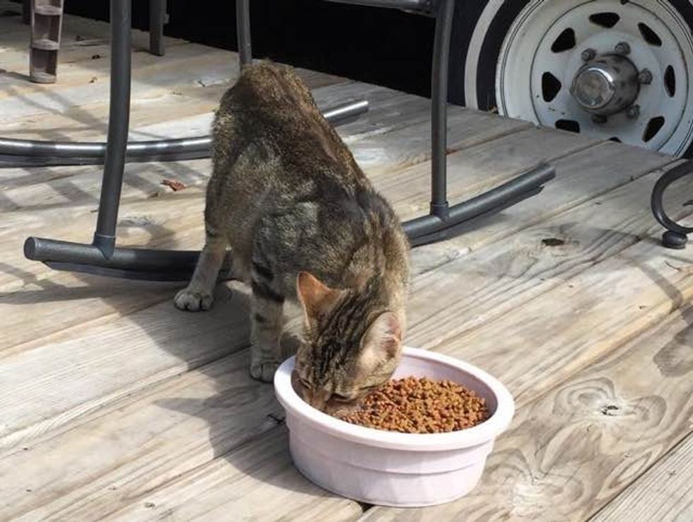 Jennifer of Here Kitty Kitty Rescue told Love Meow: "Many of the campers had seen her around but would never get close enough to touch Bindi. People would throw food to her and she would take it and run.