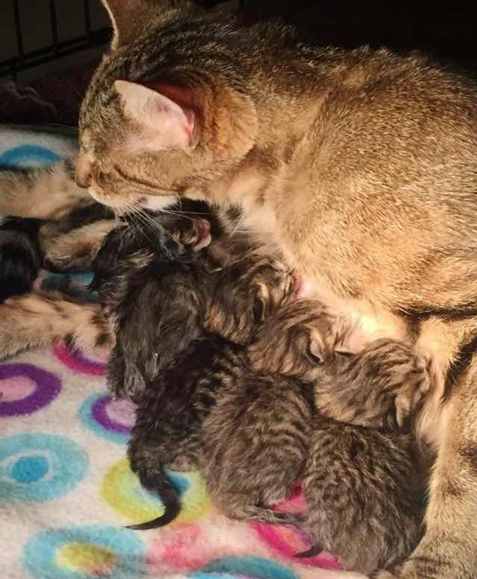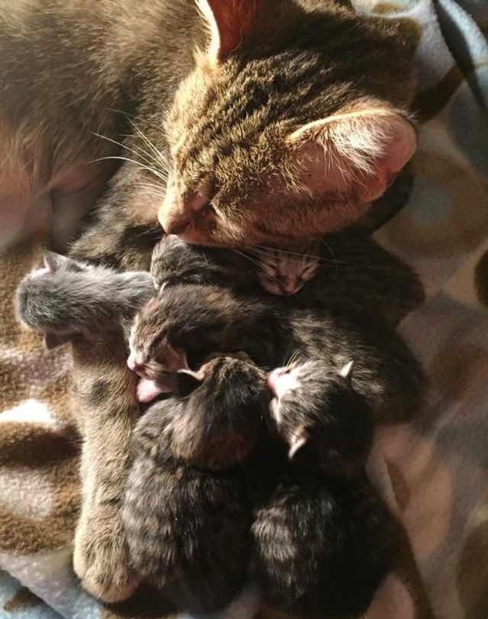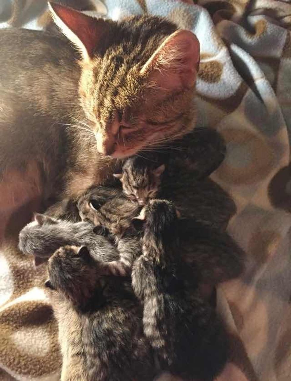 Bindi is such a loving mom. She's doing a fantastic job caring for her kittens.