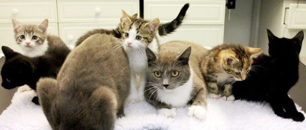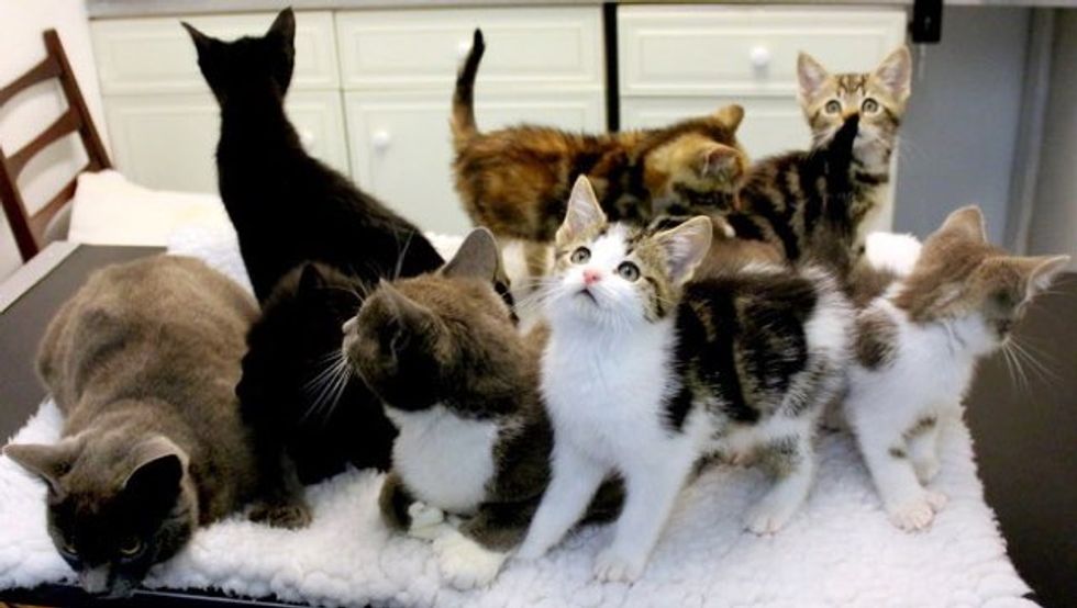 "A group of cats was recently abandoned at our Birmingham Adoption Centre. Two female adults were accompanied by six eight-week-old kittens, several of which were showing signs of mild cat flu, plus eye infections. All were seen and treated by a vet and have now been nursed back to health," via Cats Protection blog.